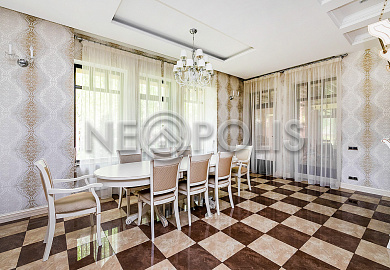 Объект расположен в комфортном для проживания поселке, на благоустроенном участке с видом на лес и ландшафтным дизайном. Полностью готов к круглогодичному проживанию. Отделка выполнена в классическом стиле из дорогих натуральных материалов.