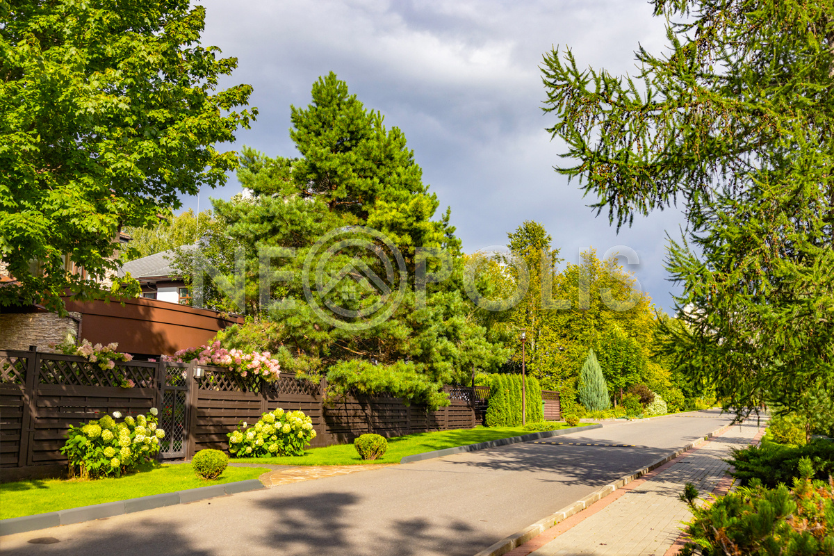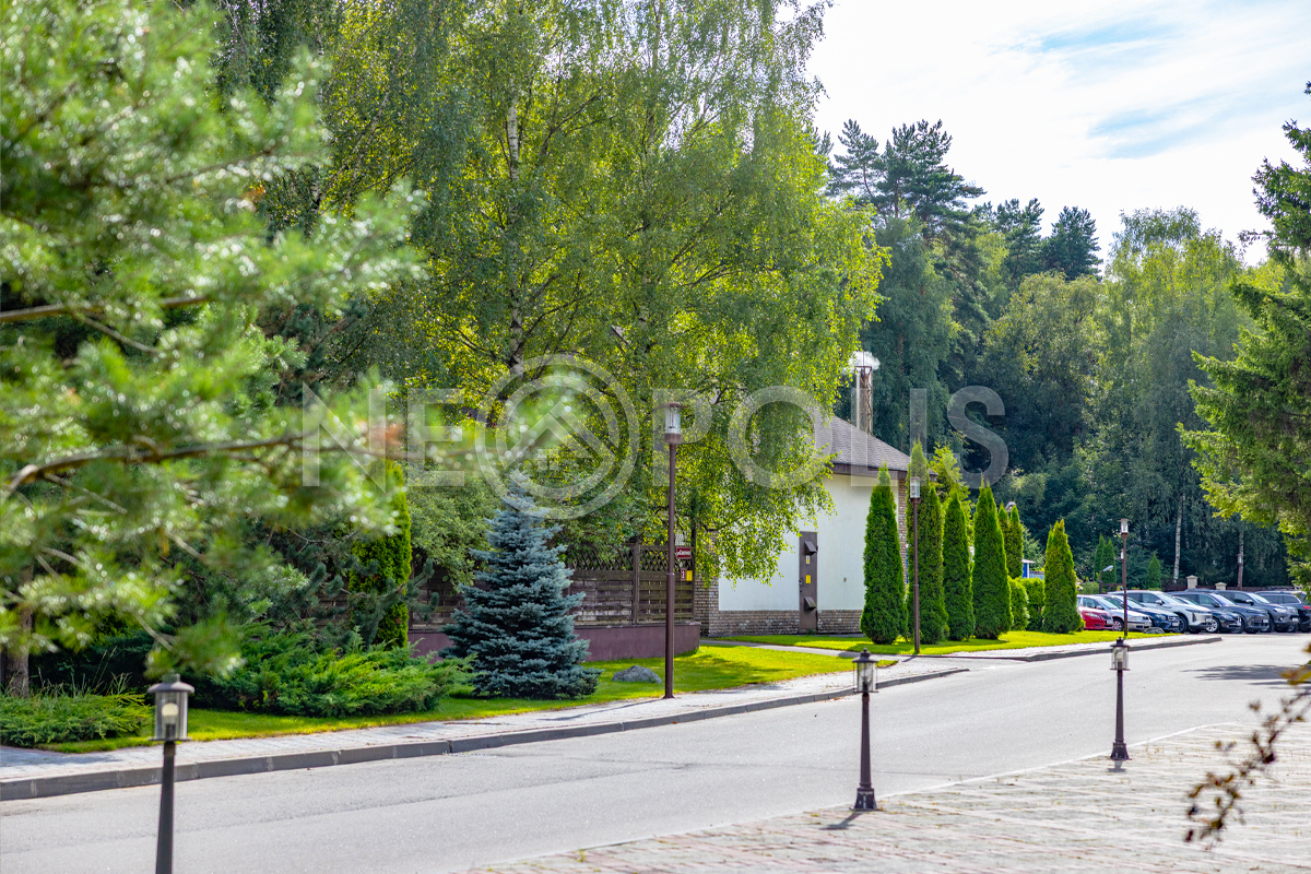 Территория поселка ограждена и круглосуточно охраняется (видеонаблюдение, патрулирование), въезд осуществляется через контрольно-пропускной пункт.