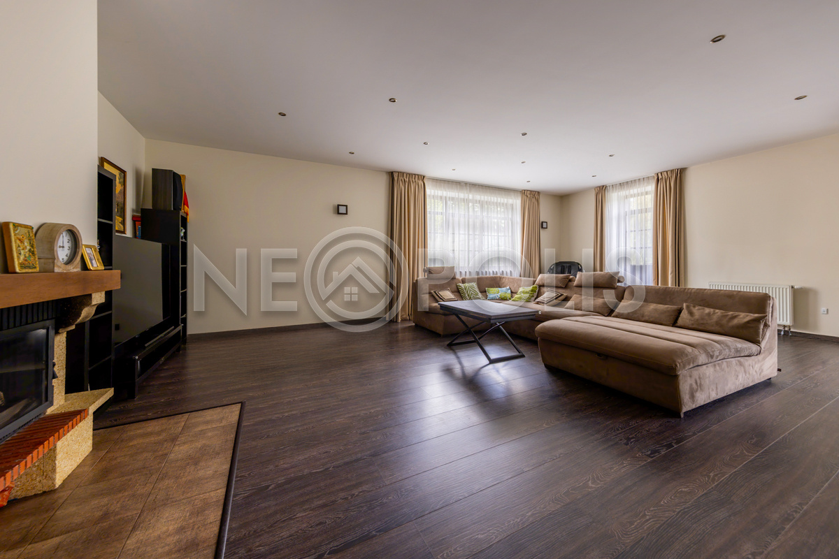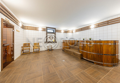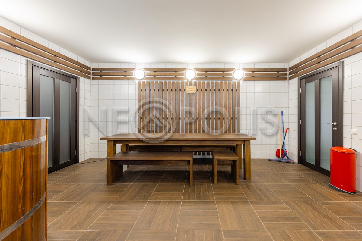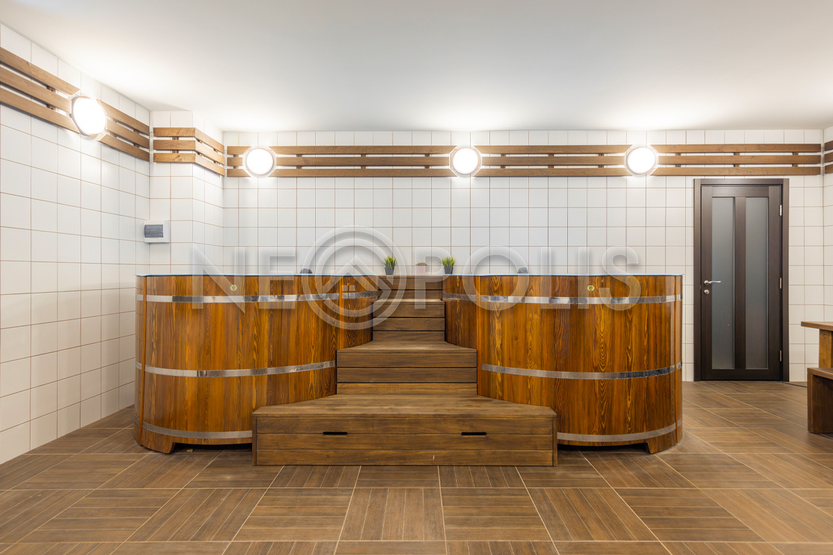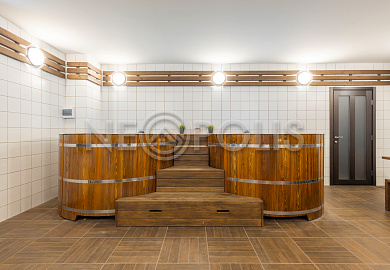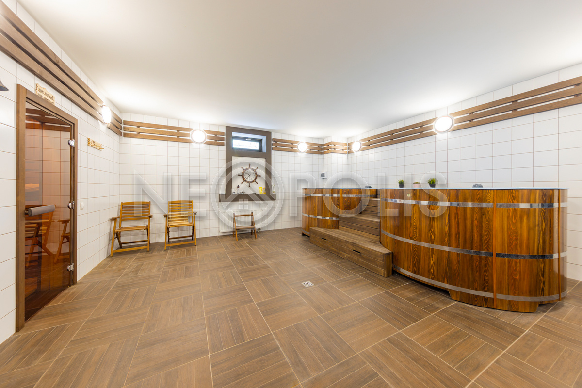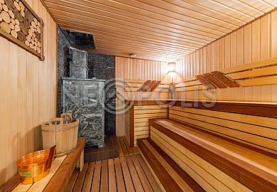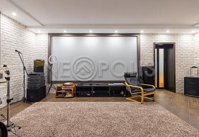 - Цоколь:баня с 2 купелями, сауна, душевая, комната отдыха, кинозал, гостевая спальня, санузел ,котельная, 2 хозяйственные комнаты свободного назначения, кладовая