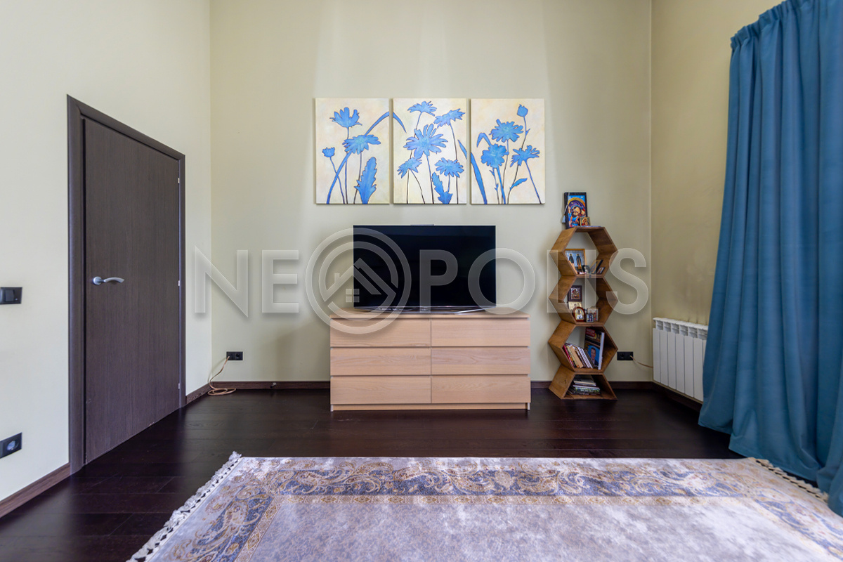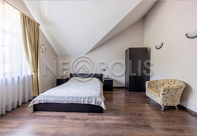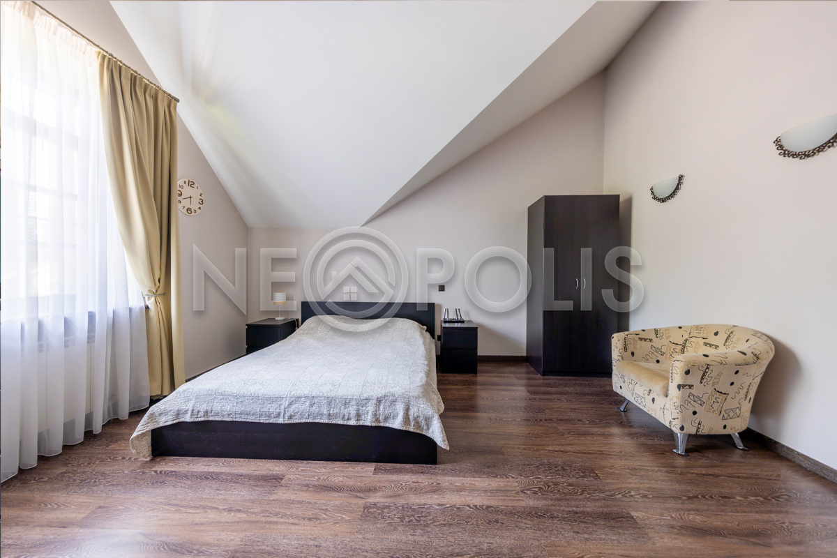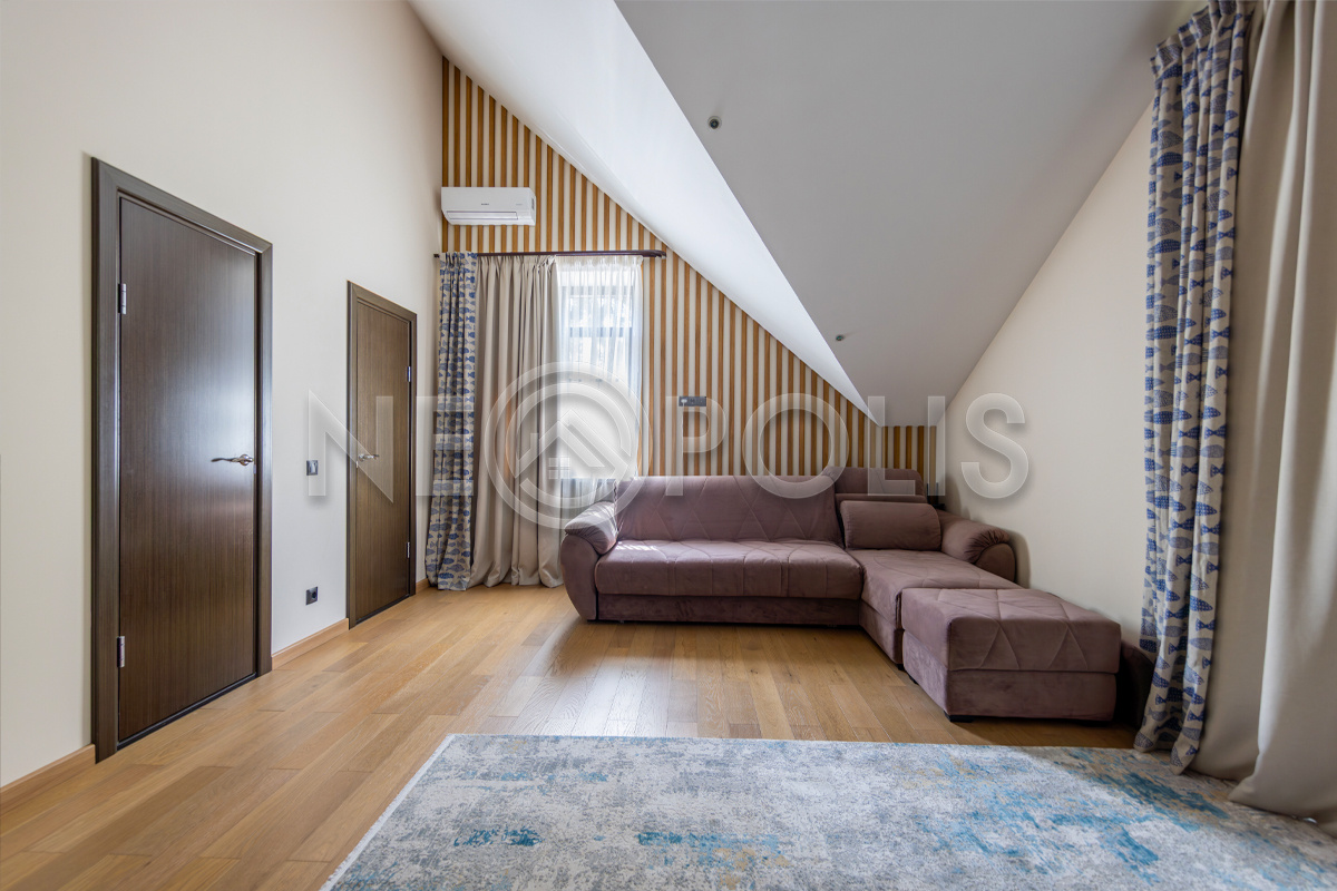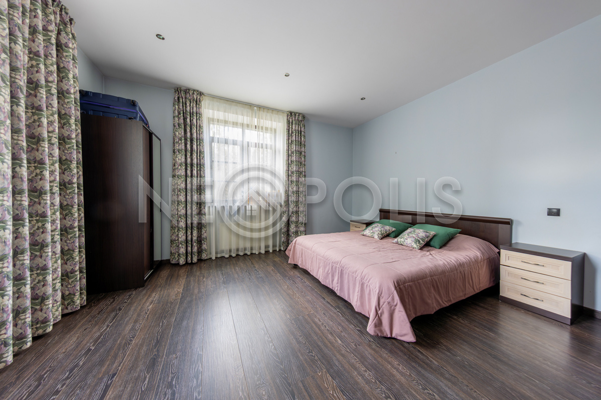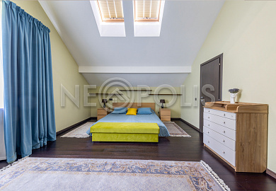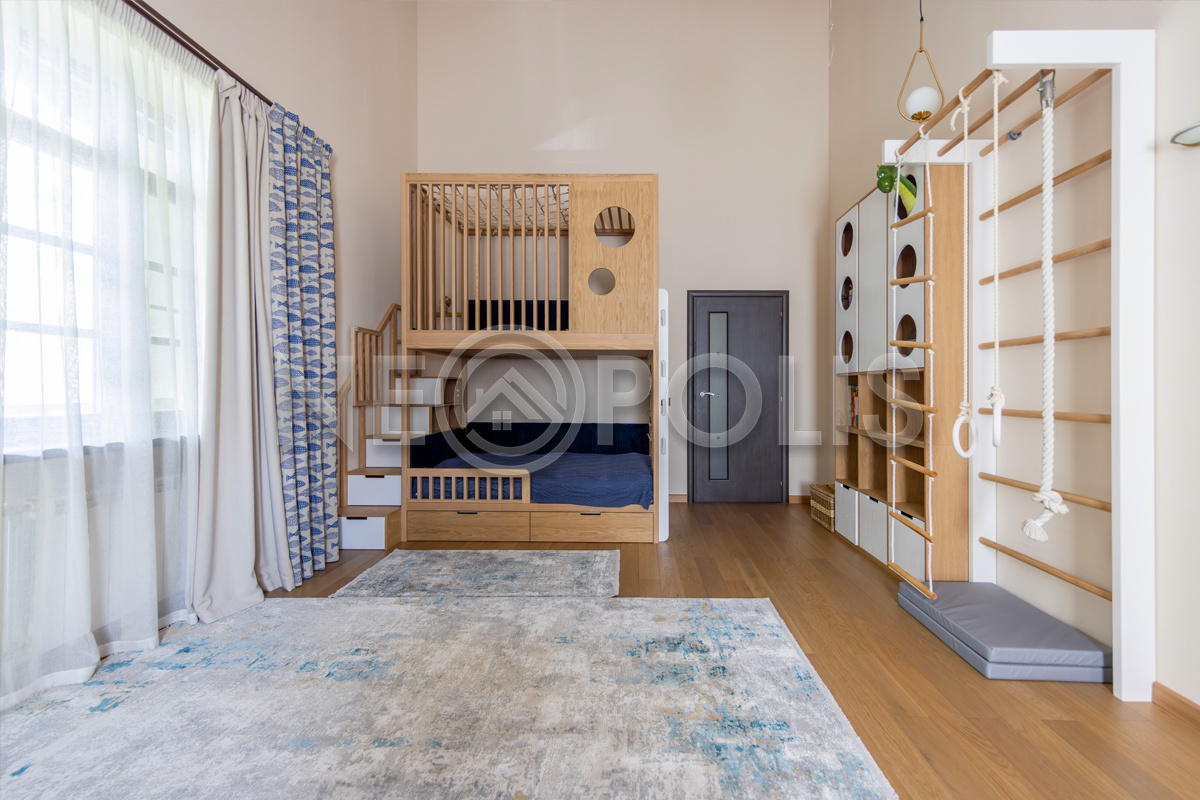 - 2 этаж:мастер-спальня со своей ванной, гардеробной комнатой и выходом на балкон, детская спальня со своей ванной комнатой и гардеробной, 2 спальни, санузел.