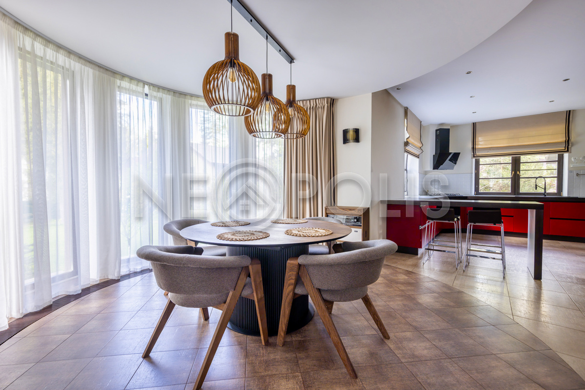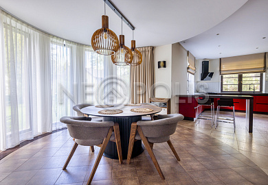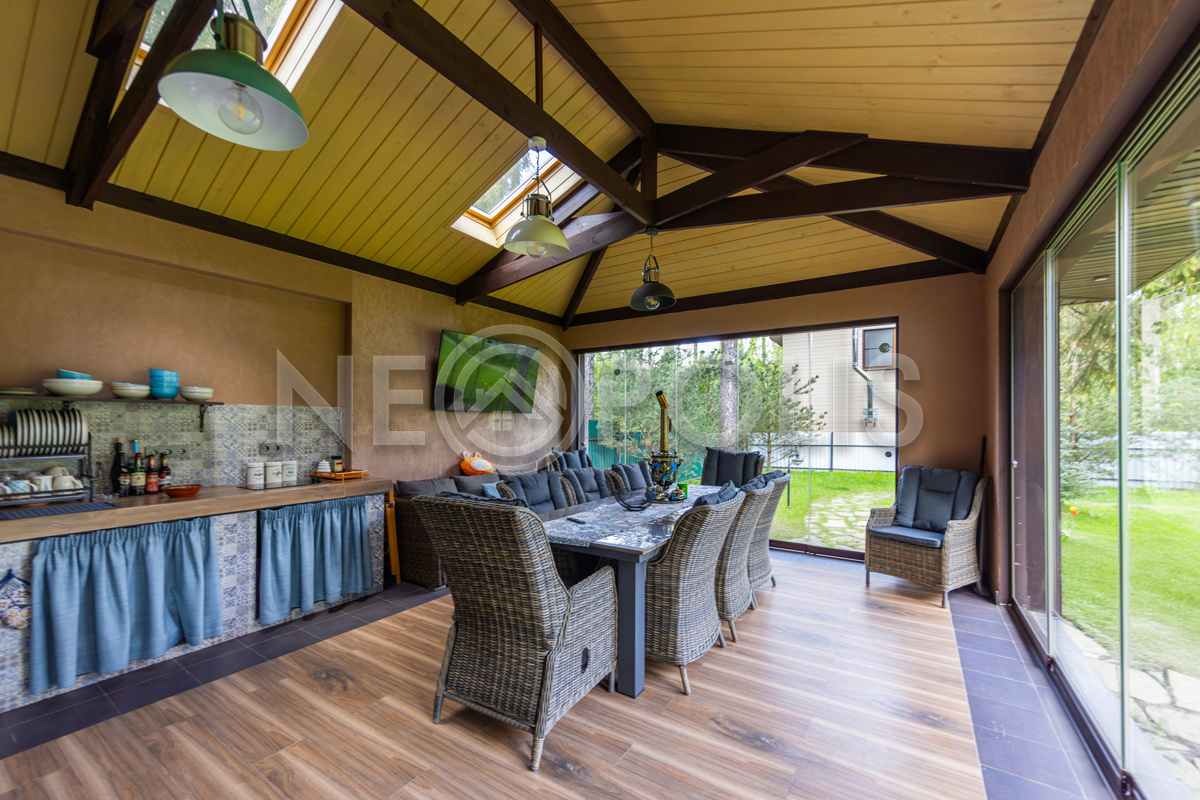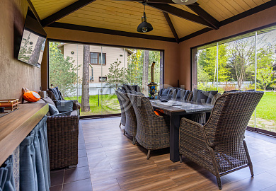 Объект расположен в комфортном для проживания поселке, на благоустроенном участке с видом на лес и ландшафтным дизайном. Полностью готов к круглогодичному проживанию. Отделка выполнена в классическом стиле из дорогих натуральных материалов.
