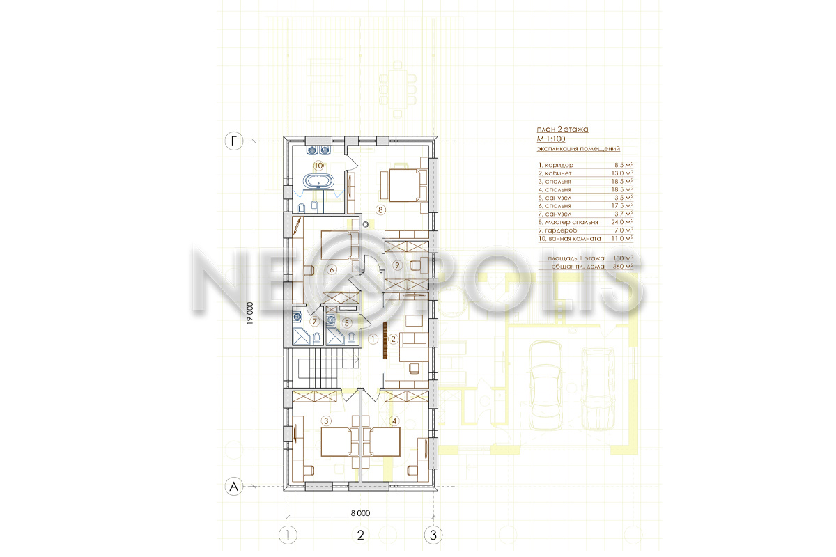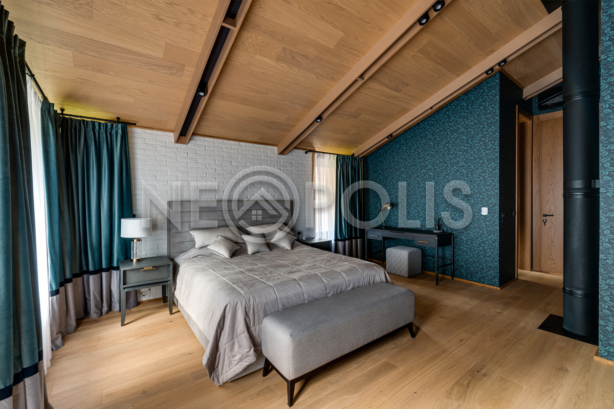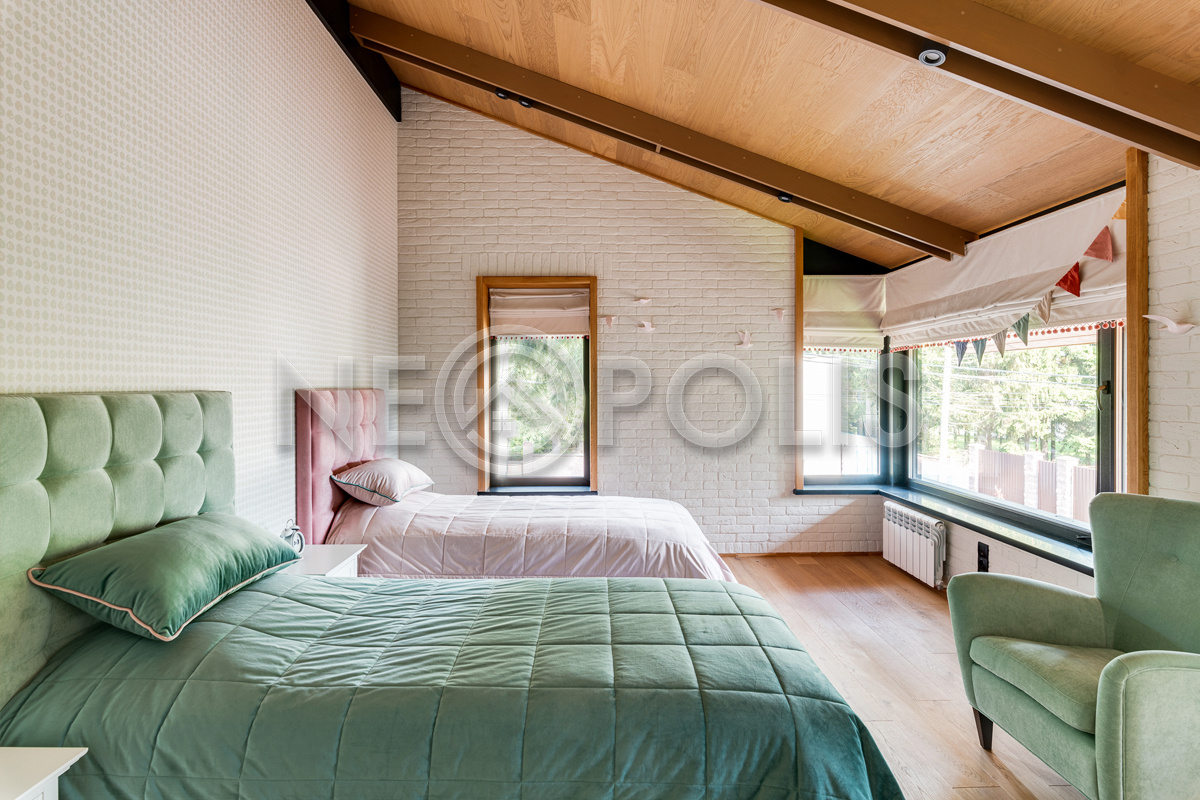 - 2 этаж:холл, мастер-спальня с гардеробной и ванной комнатой, спальня со своей ванной, 2 спальни, кабинет, санузел