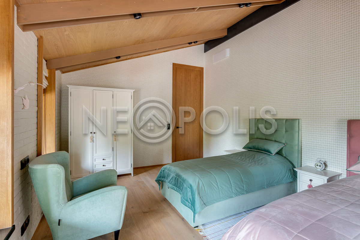Объект расположен в комфортном для проживания поселке, на благоустроенном участке с видом на лес и ландшафтным дизайном. Полностью готов к круглогодичному проживанию. Отделка выполнена в классическом стиле из дорогих натуральных материалов.