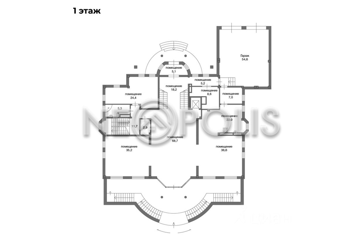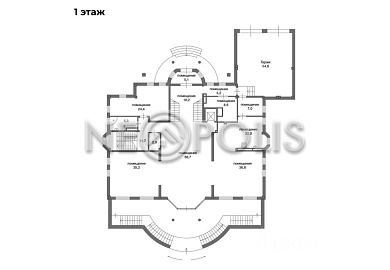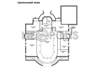 - Цоколь:холл, коридор, SPA зона: бассейн с панорамными окнами и выходом на участок, сауна, купель, комната отдыха, бильярдная, квартира для персонала с отдельным входом: тамбур, коридор, кухня-столовая, спальня, санузел; кладовая, прачечная.