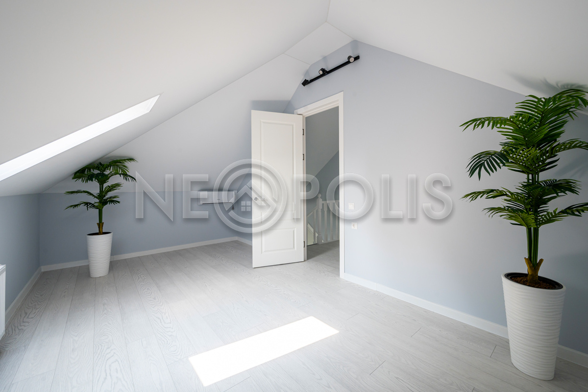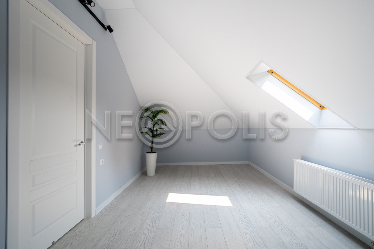 - Мансарда:холл, спальня с гардеробной, кабинет, санузел.