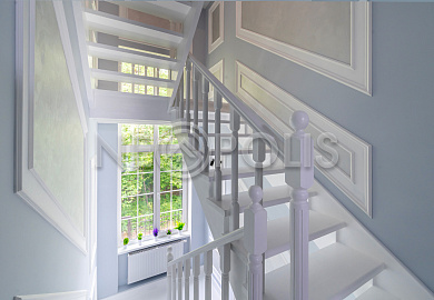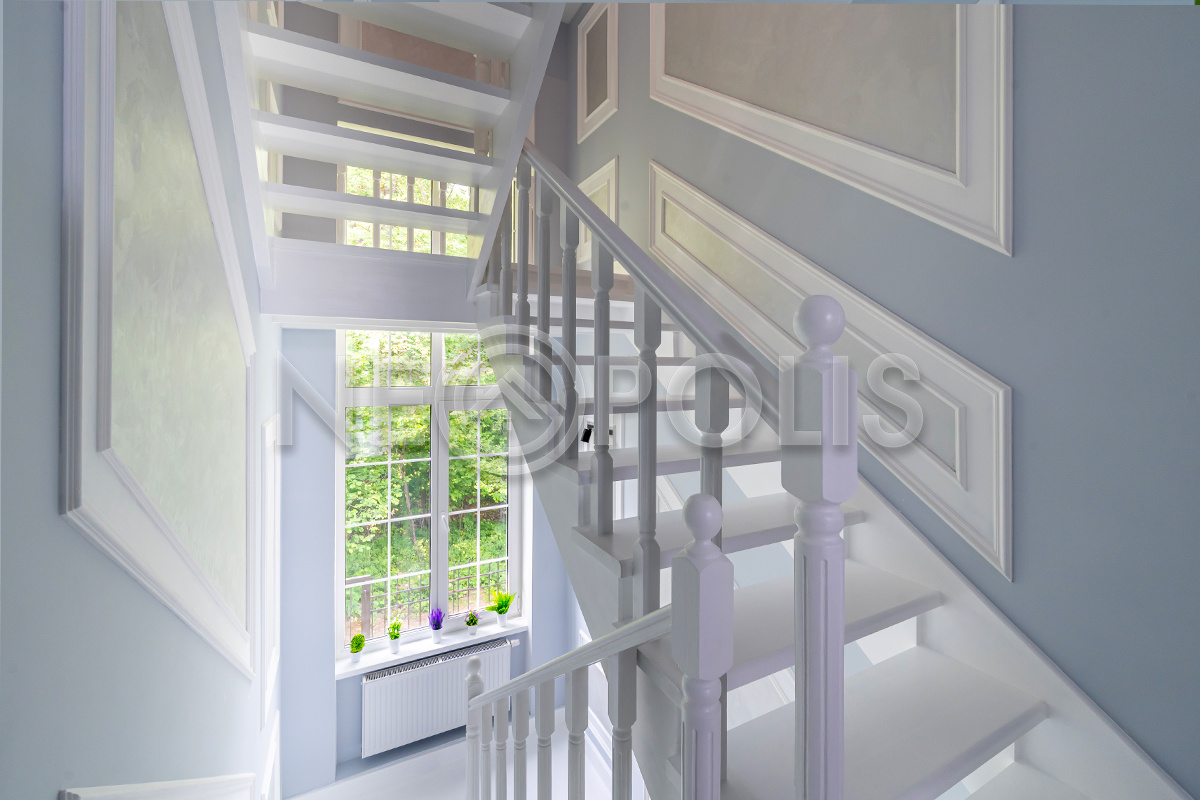 - Окна: стеклопакеты ПВХ (2-х камерные белые с раскладкой REACHMONT, большого размера Н-2.5 м, на мансарде - мансардные Velux)