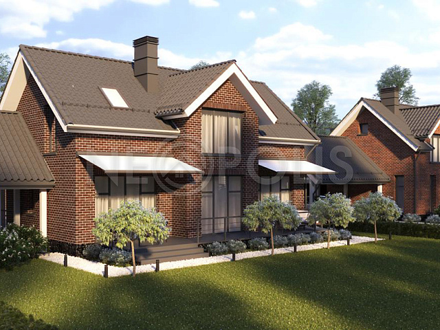 - Материал стен поризованный керамический кирпич (производство - ЛСР), облицовка фасада - облицовочный керамический кирпич, цоколь - искусственный камень