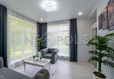 Объект расположен в комфортном для проживания поселке, на благоустроенном участке с видом на лес и ландшафтным дизайном. Полностью готов к круглогодичному проживанию. Отделка выполнена в классическом стиле из дорогих натуральных материалов.