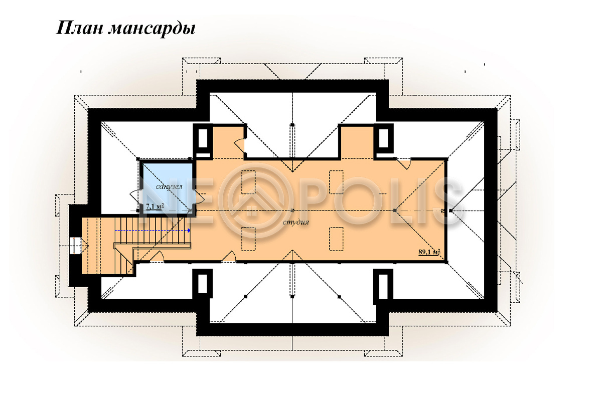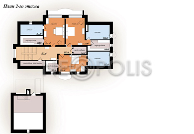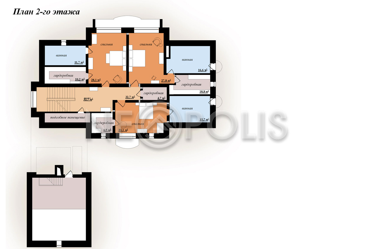 - 2 этаж:холл, три спальни с гардеробными и ванными комнатами.