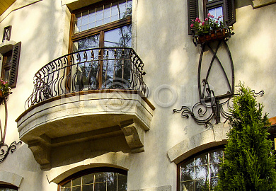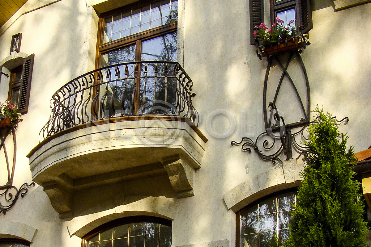 - Окна: деревянные двухкамерные стеклопакеты из красного дерева, с деревянными ставнями производства Польши