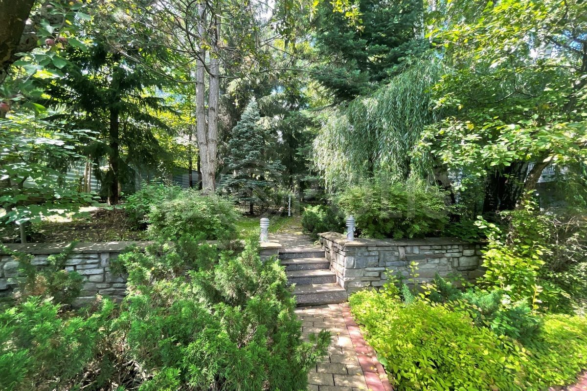 Разноуровневый лесной участок с парковым ландшафтом, утопает в зелени многолетних и декоративных деревьев.