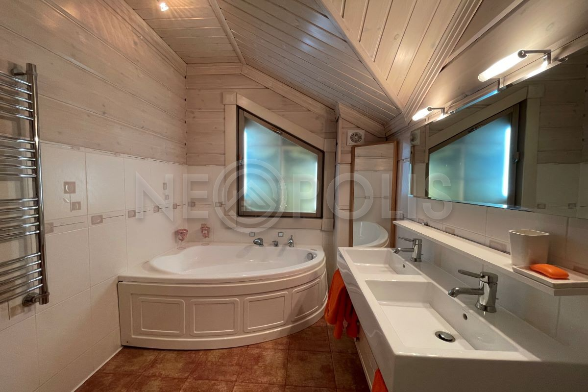 Объект расположен в комфортном для проживания поселке, на благоустроенном участке с видом на лес и ландшафтным дизайном. Полностью готов к круглогодичному проживанию. Отделка выполнена в классическом стиле из дорогих натуральных материалов.