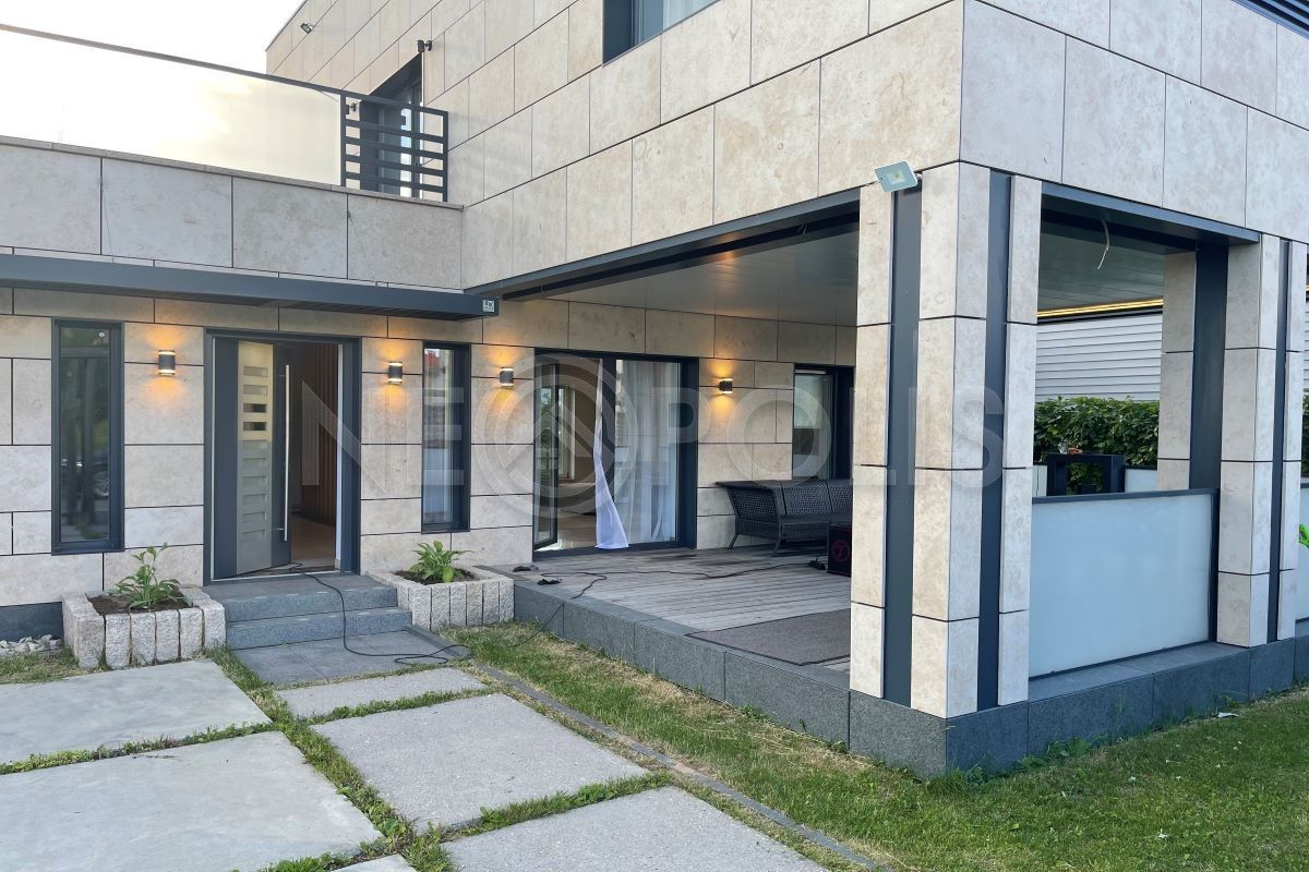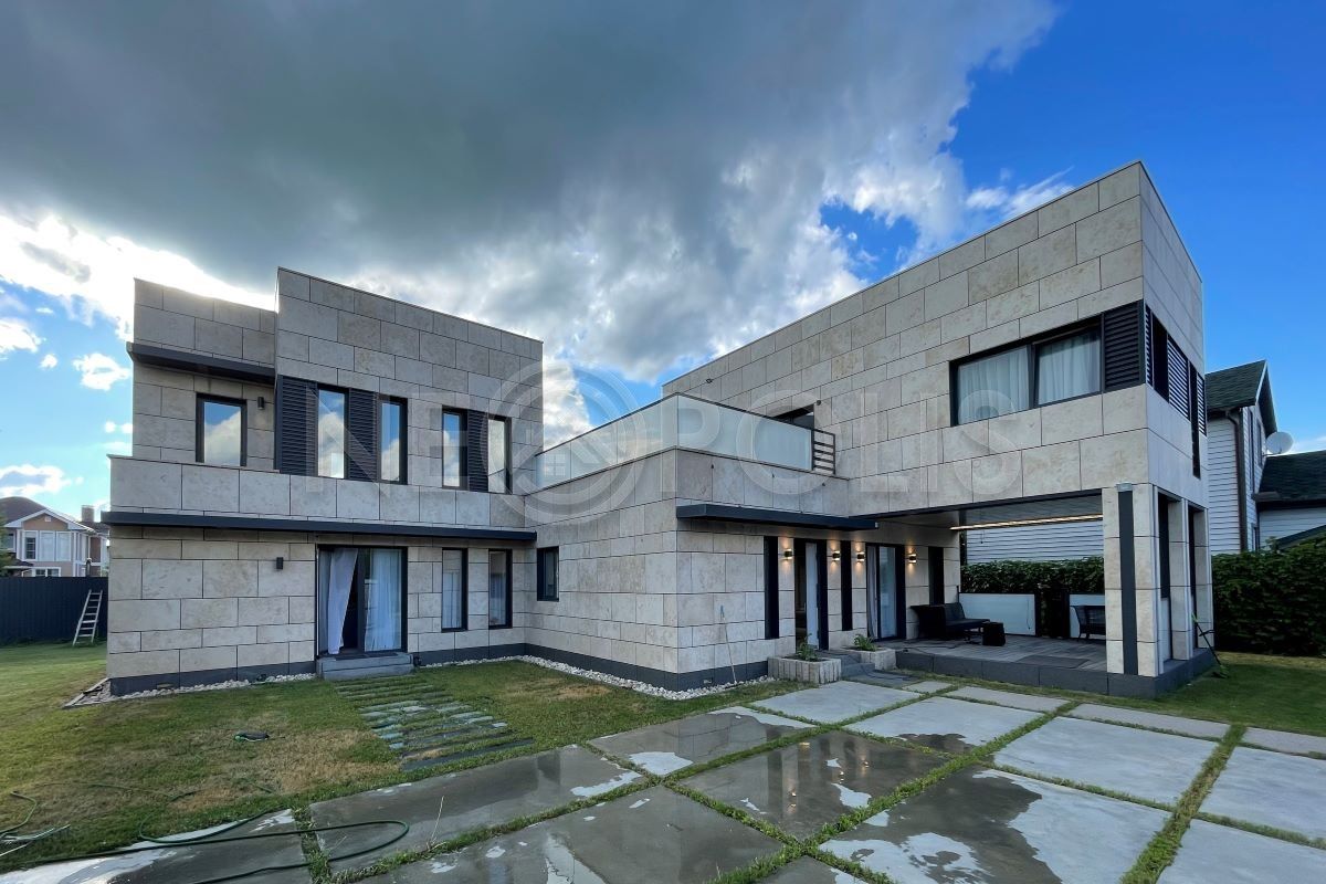 - Материал стен стальной каркас и утеплитель, фасад облицован натуральным камнем и юрским мрамором, внутри стены окрашены