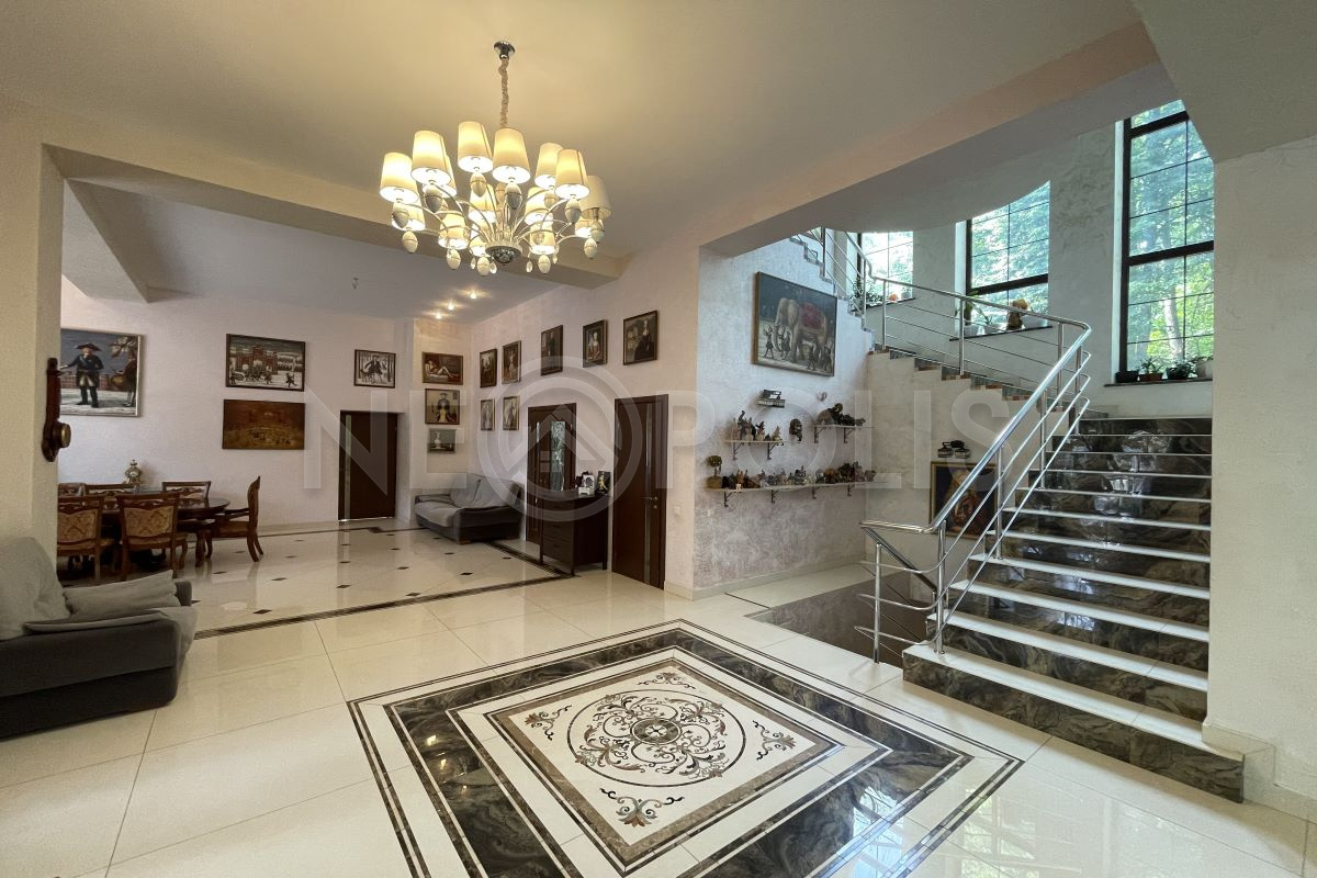 Объект расположен в комфортном для проживания поселке, на благоустроенном участке с видом на лес и ландшафтным дизайном. Полностью готов к круглогодичному проживанию. Отделка выполнена в классическом стиле из дорогих натуральных материалов.