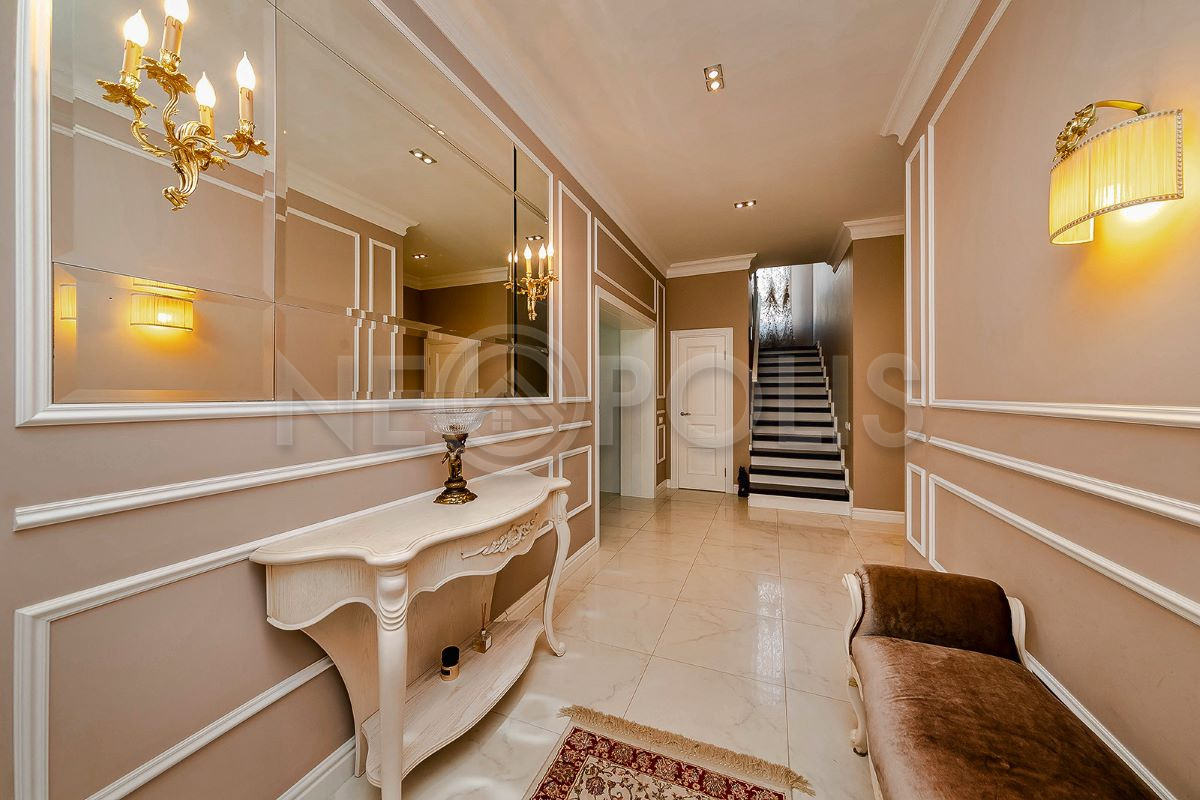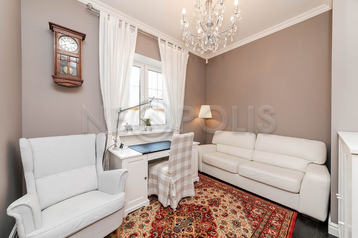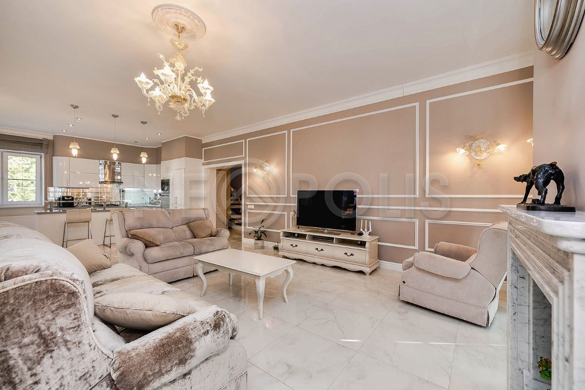 Объект расположен в комфортном для проживания поселке, на благоустроенном участке с видом на лес и ландшафтным дизайном. Полностью готов к круглогодичному проживанию. Отделка выполнена в классическом стиле из дорогих натуральных материалов.