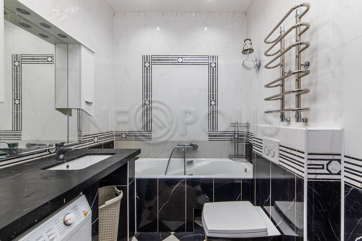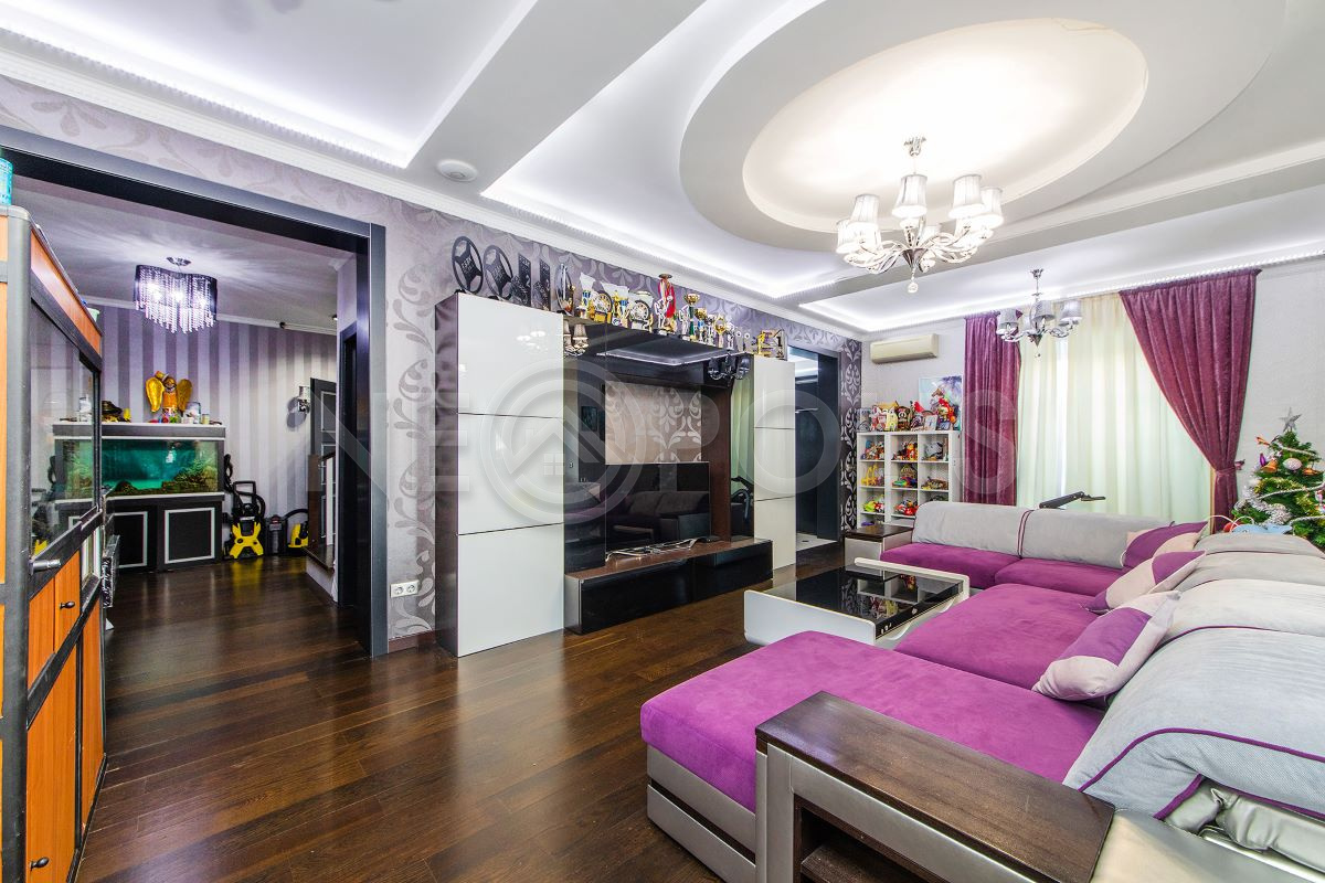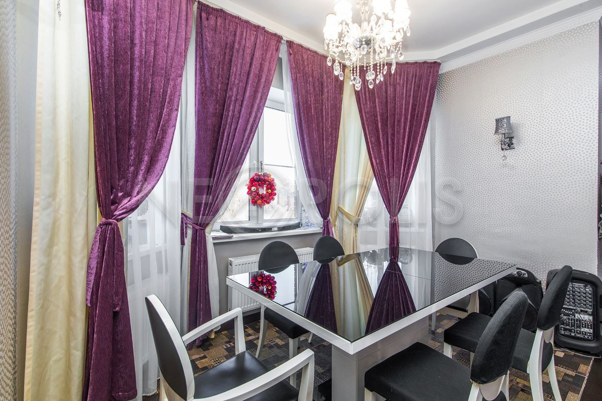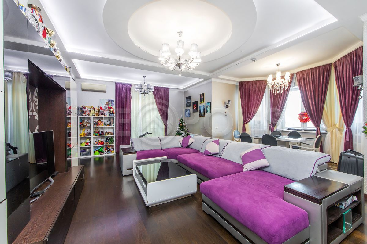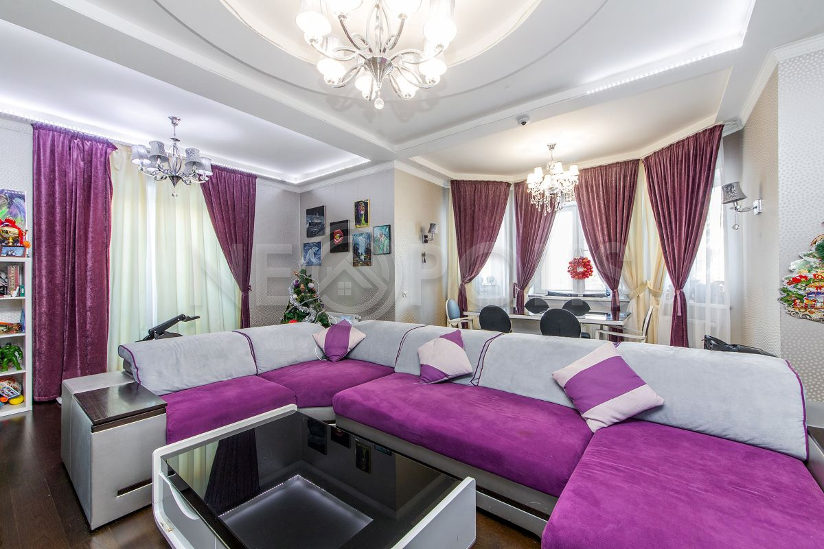 - Мебель: установлена кухня со встроенной техникой, мягкая и стильная мебель с яркими акцентами