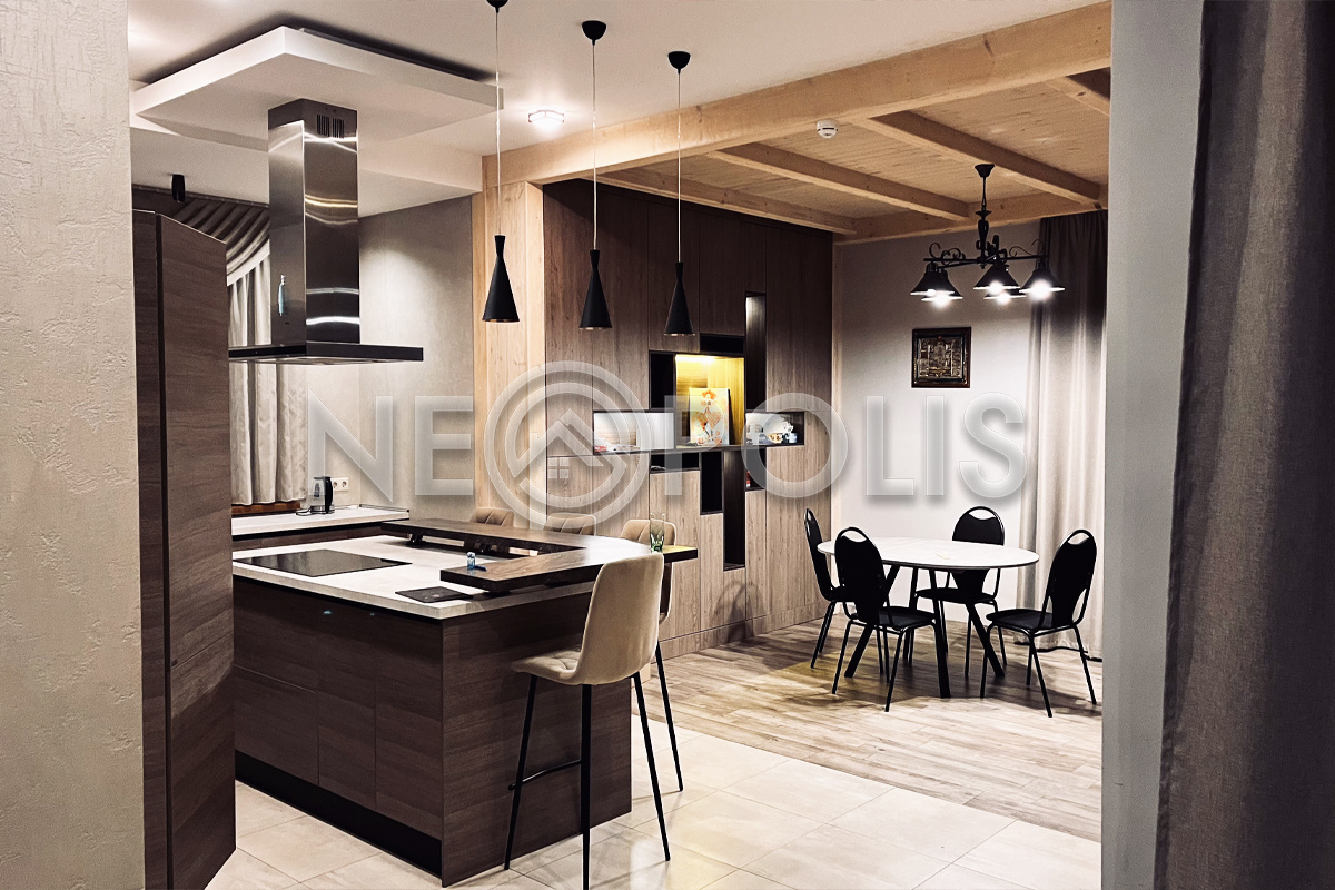 - Полы: паркет, плитка с системой теплых полов