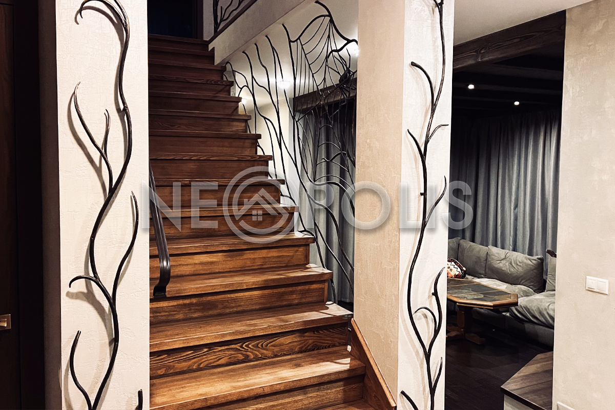 - Лестница: металлический каркас, ступени - дерево