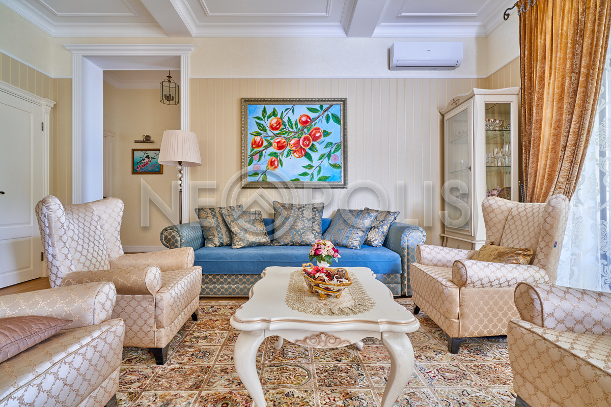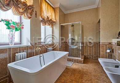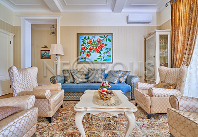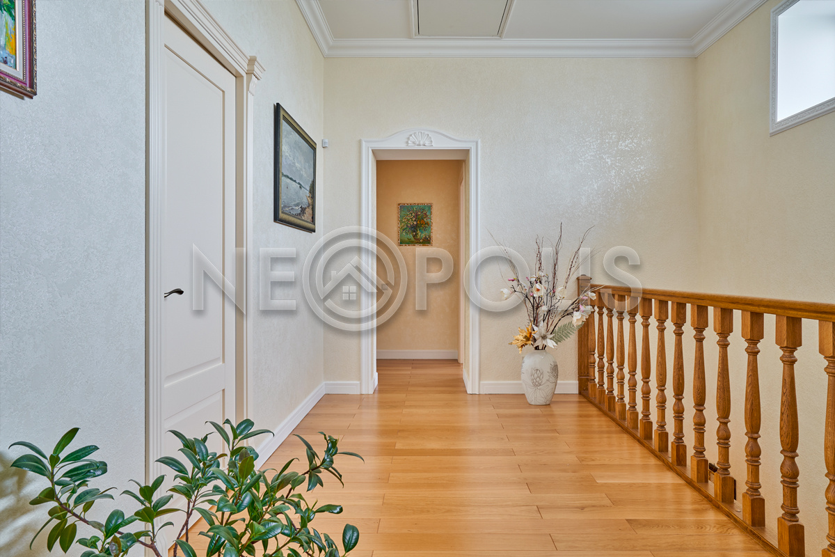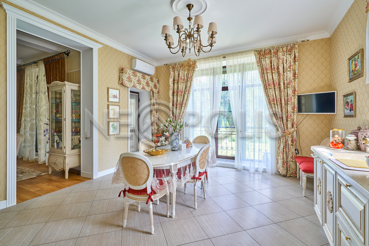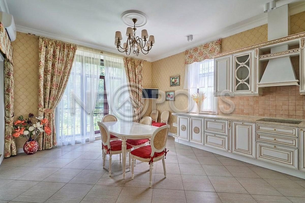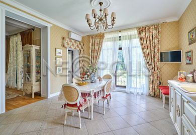 Объект расположен в комфортном для проживания поселке, на благоустроенном участке с видом на лес и ландшафтным дизайном. Полностью готов к круглогодичному проживанию. Отделка выполнена в классическом стиле из дорогих натуральных материалов.