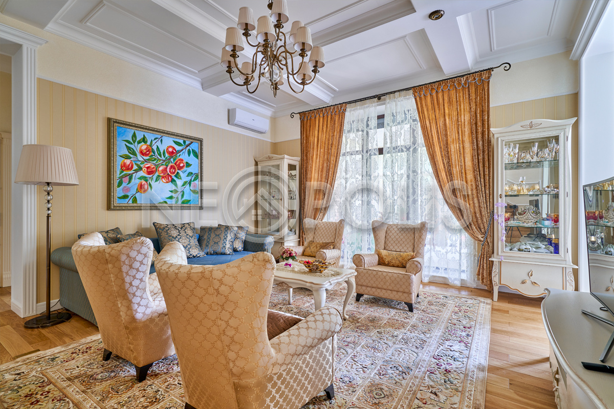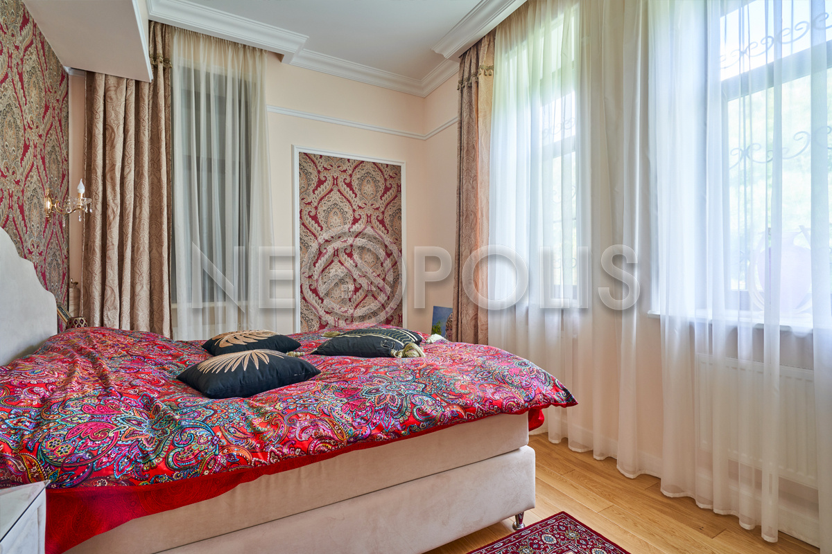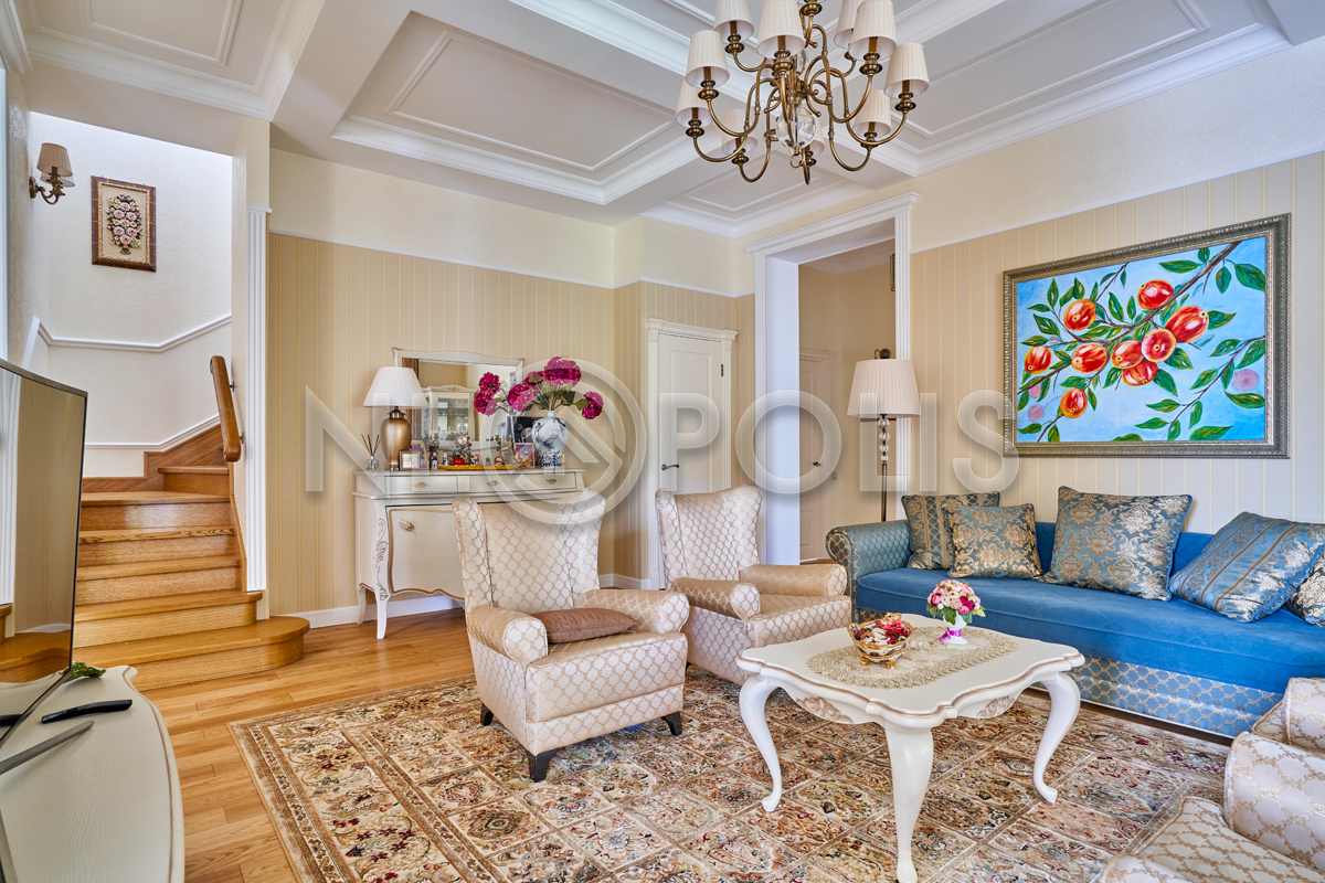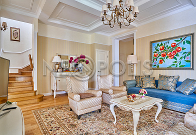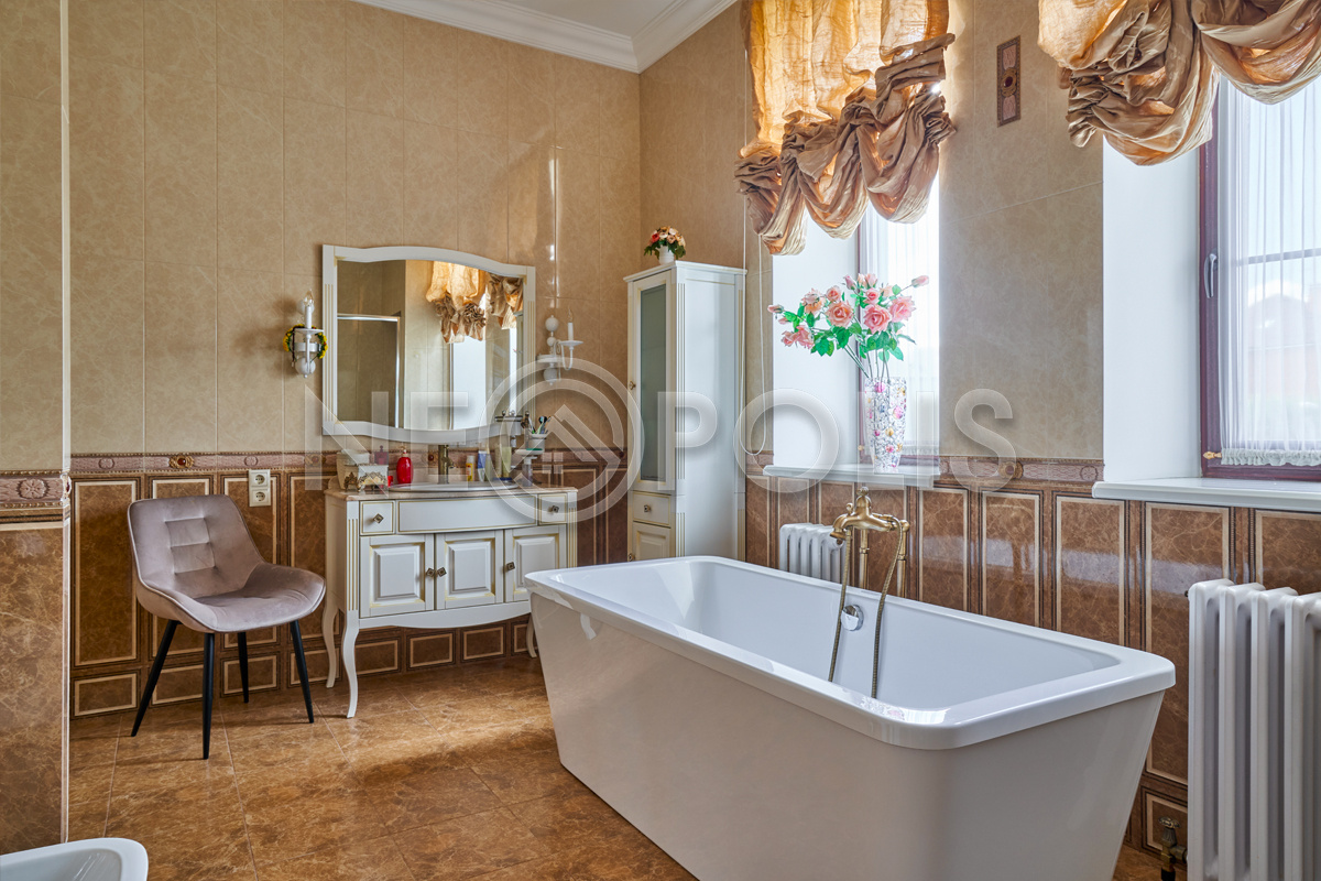 Объект расположен в комфортном для проживания поселке, на благоустроенном участке с видом на лес и ландшафтным дизайном. Полностью готов к круглогодичному проживанию. Отделка выполнена в классическом стиле из дорогих натуральных материалов.