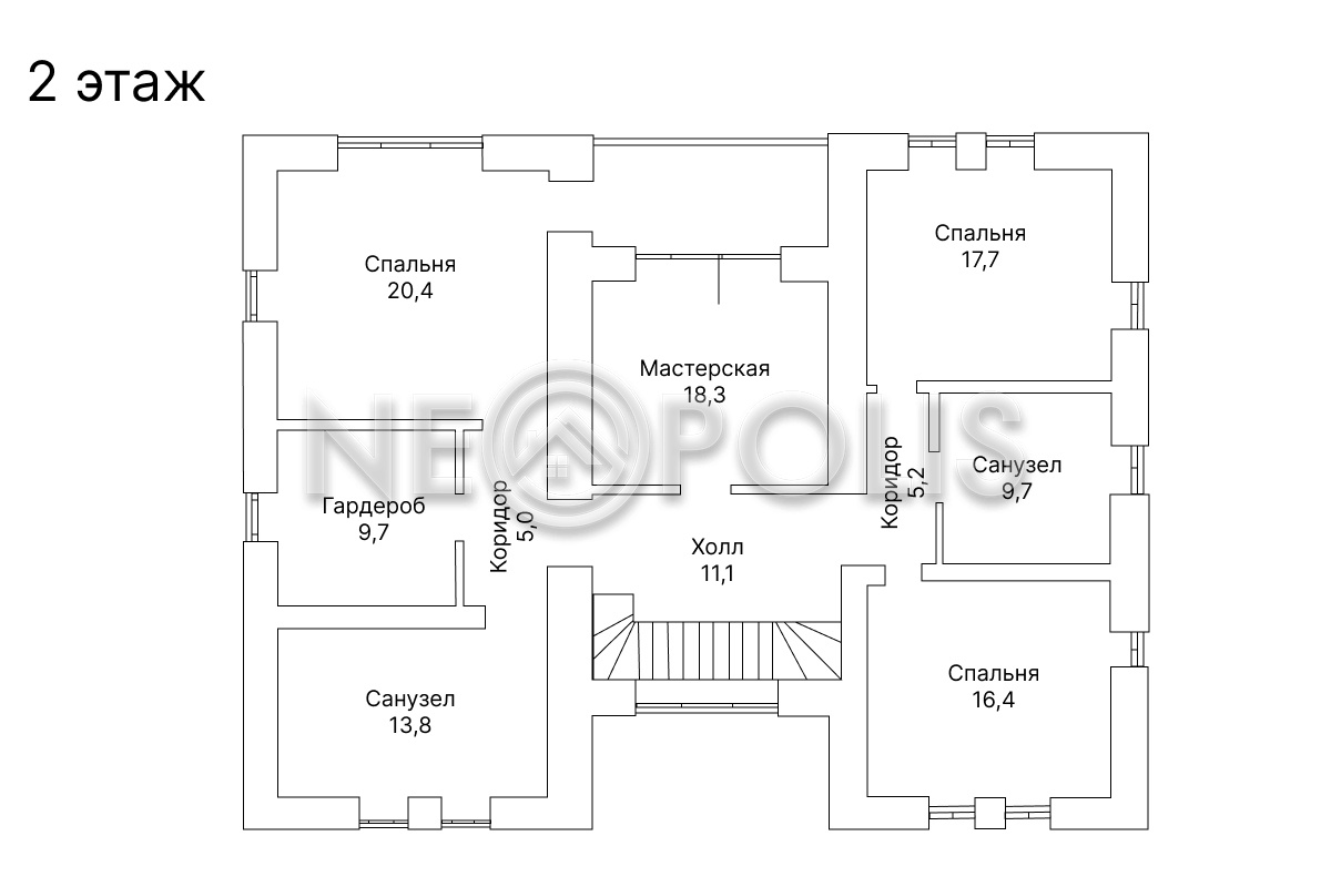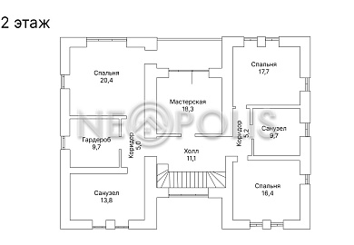 - 2 этаж:холл, мастер-спальня с гардеробной и ванной комнатой, 2 спальни с общим санузлом, кабинет.