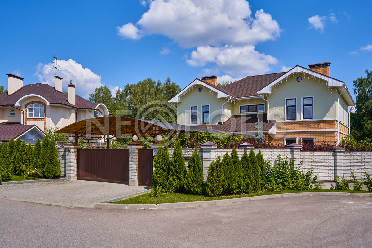По периметру участка забор с автоматическими воротами.