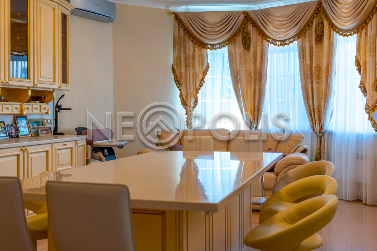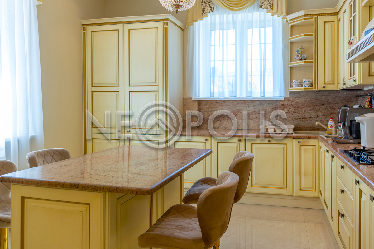 - Мебель: кухонный гарнитур со столешницей из натурального гранита со встроенной газовой плитой, встроенная духовка и микроволновка BOSH, холодильник LIEBHERR