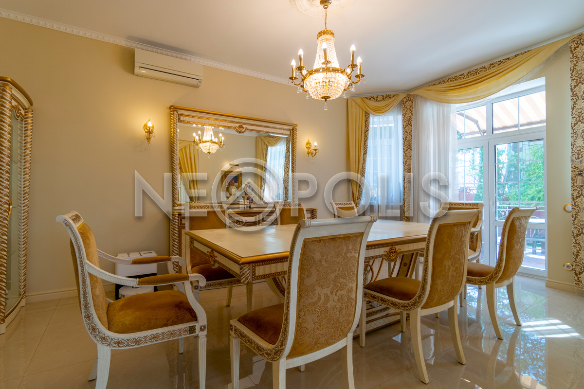 Объект расположен в комфортном для проживания поселке, на благоустроенном участке с видом на лес и ландшафтным дизайном. Полностью готов к круглогодичному проживанию. Отделка выполнена в классическом стиле из дорогих натуральных материалов.
