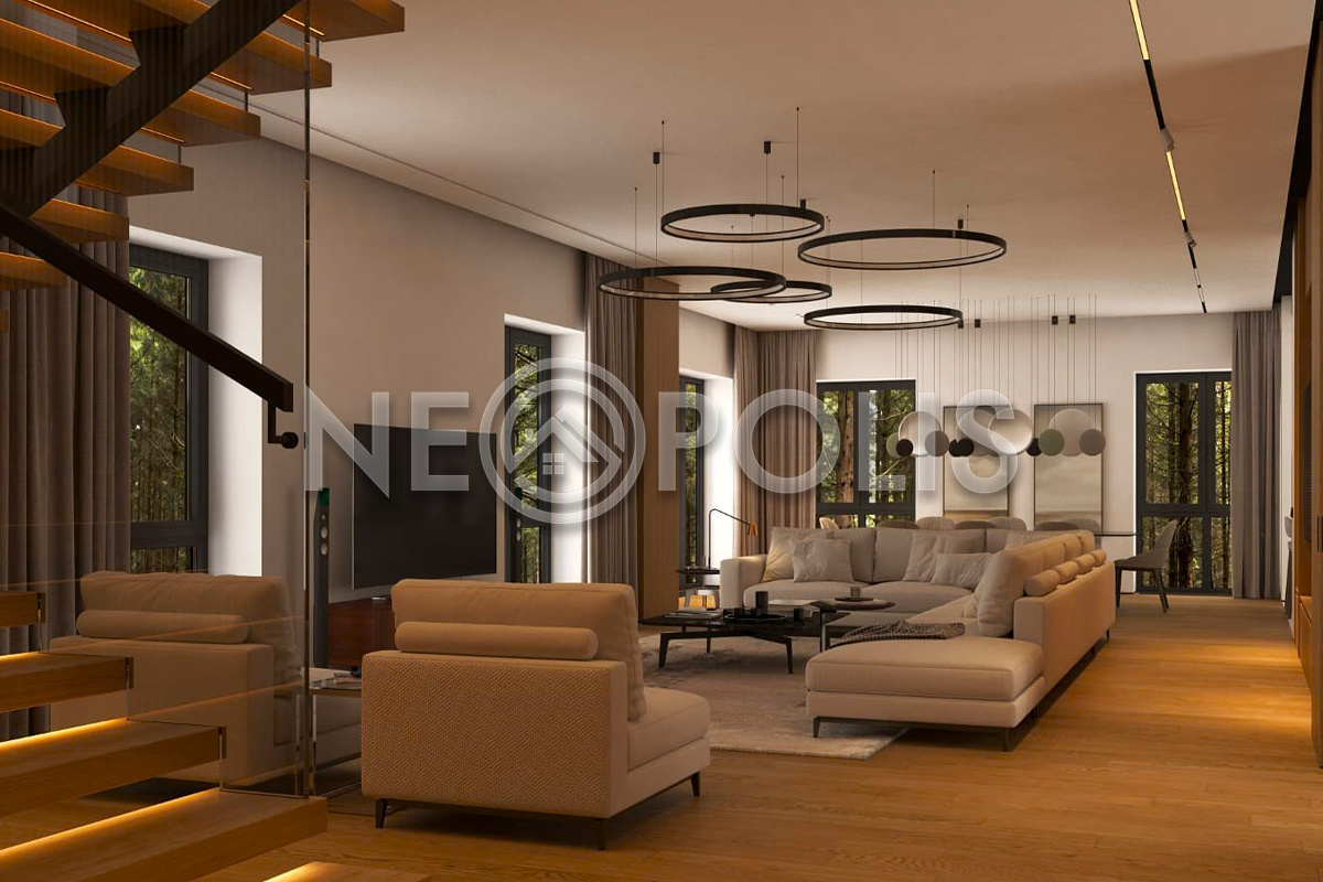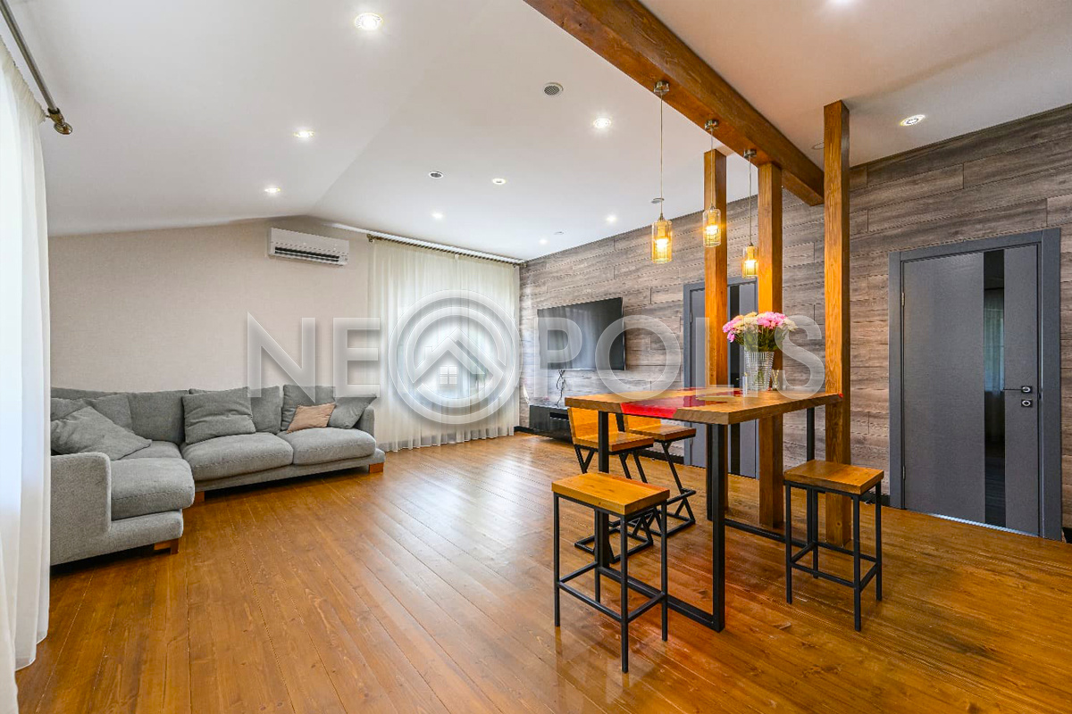 Объект расположен в комфортном для проживания поселке, на благоустроенном участке с видом на лес и ландшафтным дизайном. Полностью готов к круглогодичному проживанию. Отделка выполнена в классическом стиле из дорогих натуральных материалов.