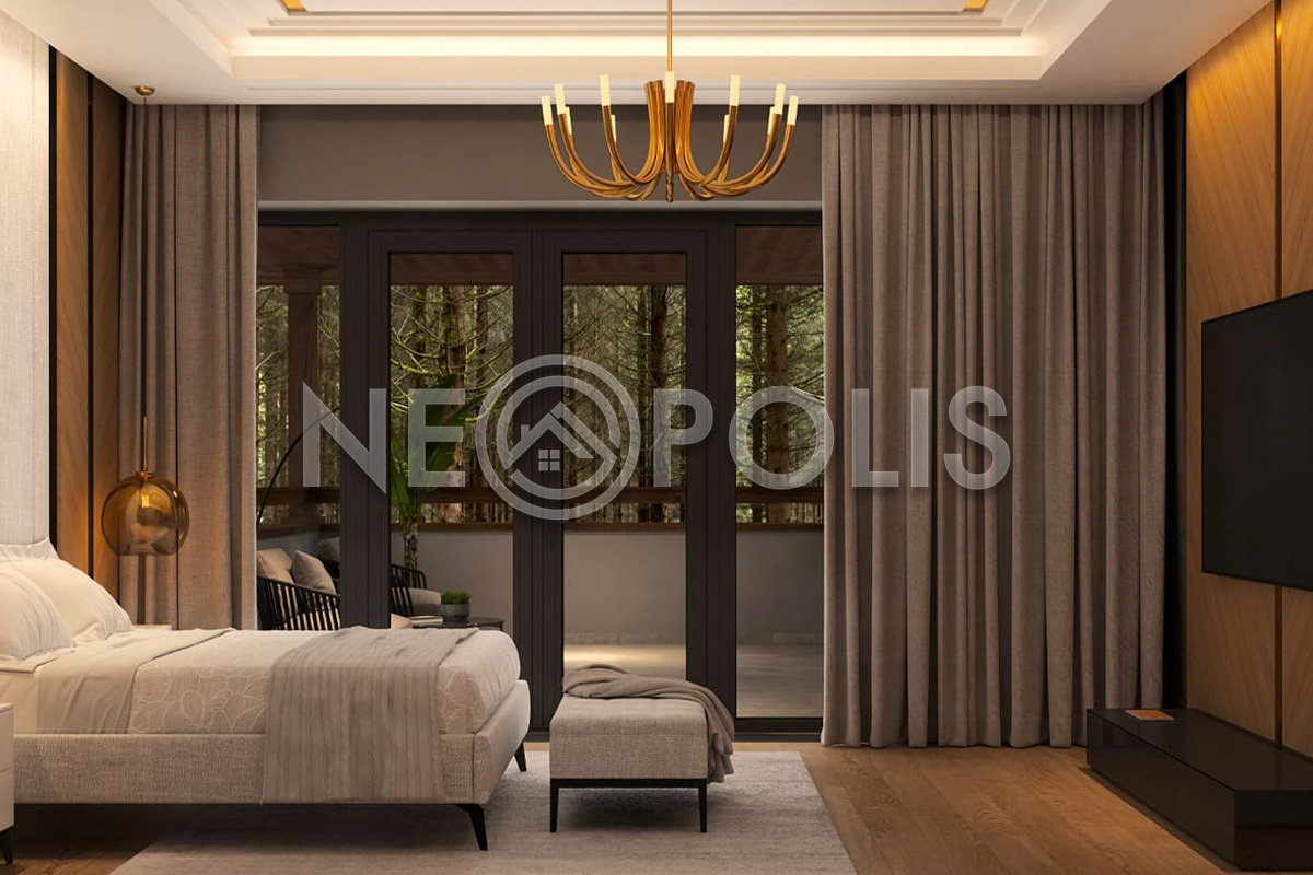- 2 этаж:холл, мастер-спальня с двумя гардеробными, ванной комнатой и выходом на балкон, детский блок: 2 спальни, игровая, ванная комната.