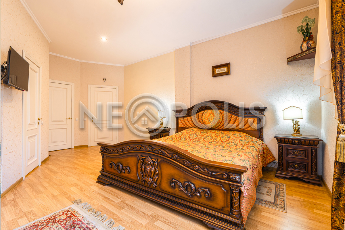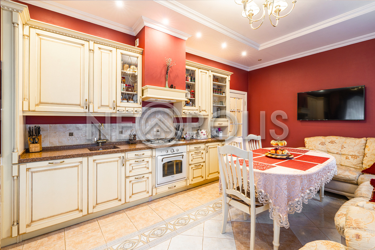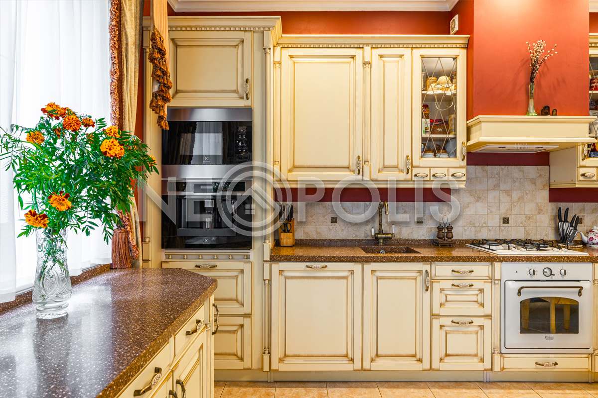 - Мебель: Electrolux (микроволновка, кофеварка), Ariston Hotpoint (духовой шкаф, варочная поверхность, вытяжка, посудомоечная машина),комплект мебели BEZZICCHERI из Италии. Комплект мебели в мастер спальне из массива ручной работы от MOBIL DERI (Италия)