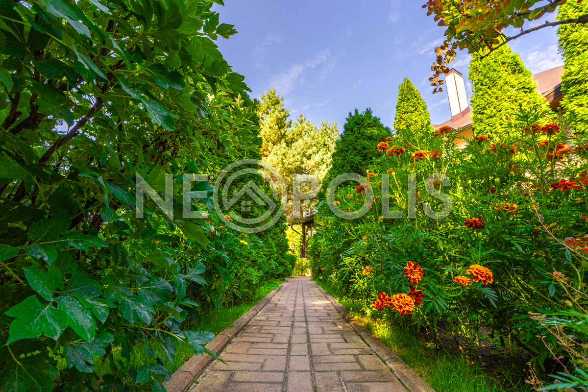 Участок правильно формы с парковым ландшафтным дизайном, огорожен забором по периметру, выполнен дренаж.
