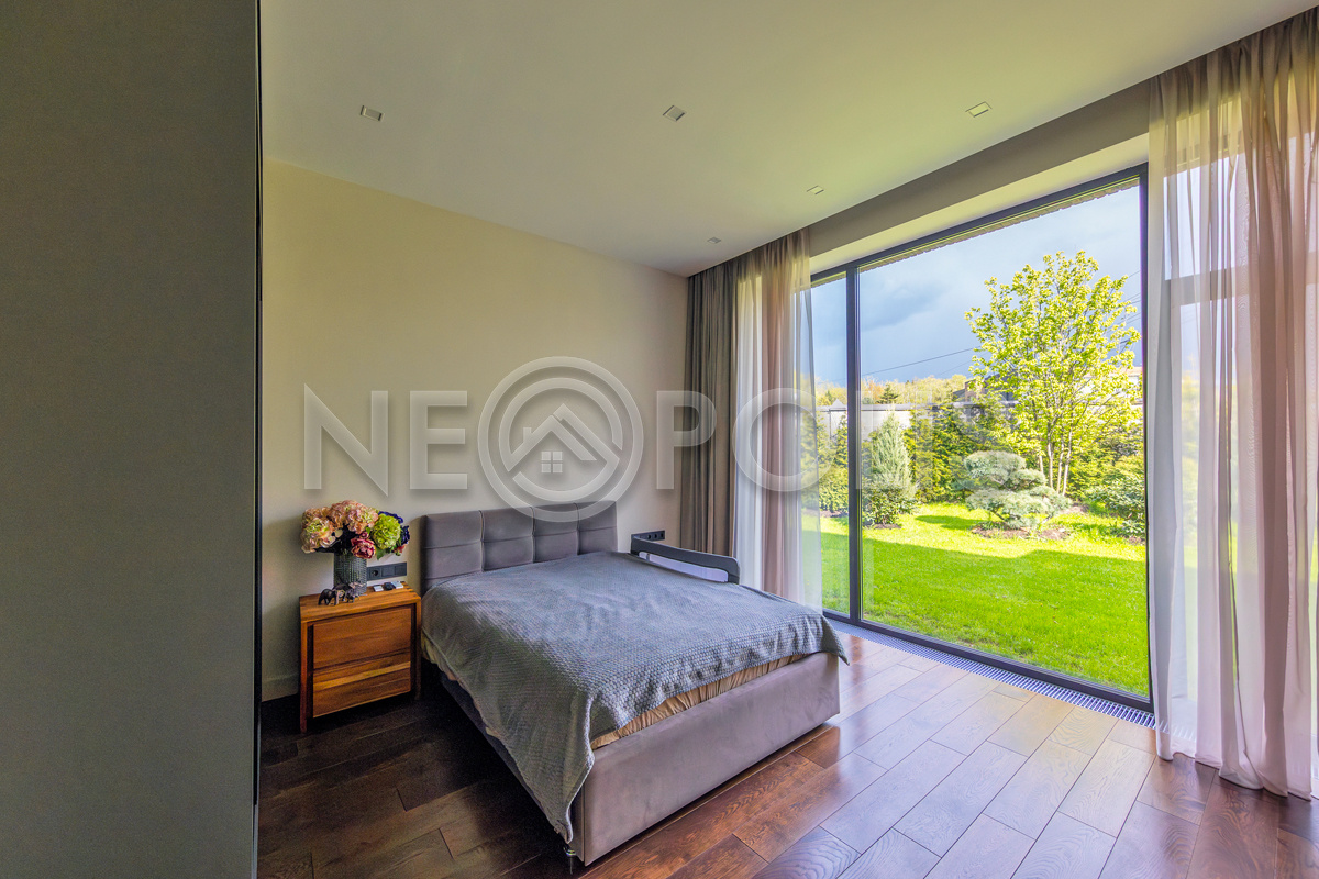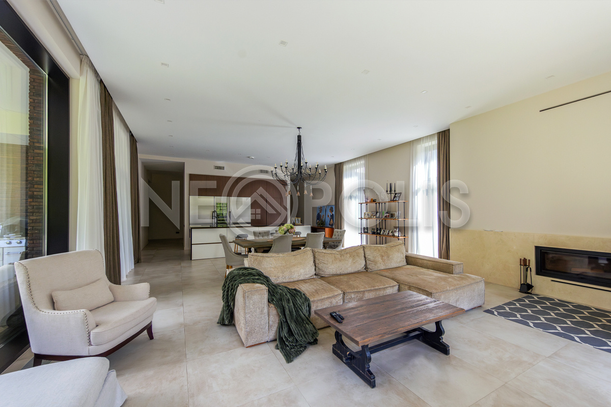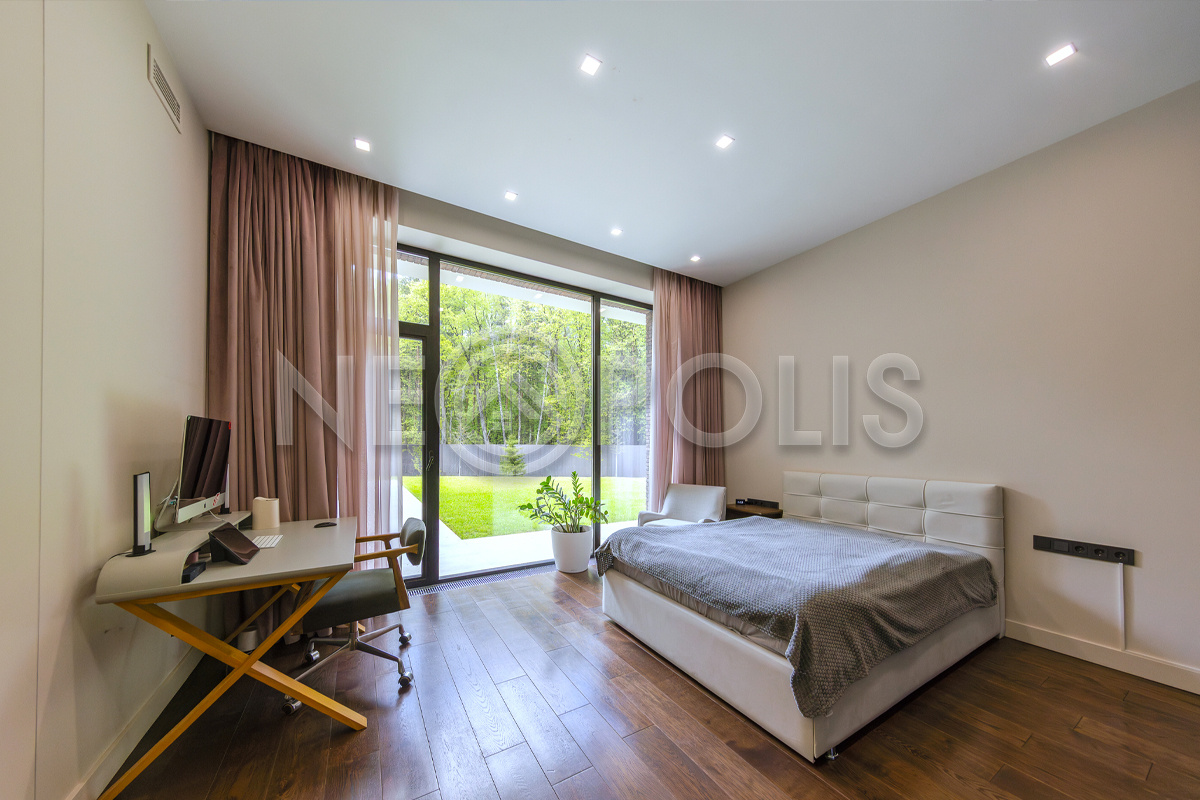 - 1 этажхолл, кухня-столовая, гостиная с камином и выходом на террасу, мастер-спальня с гардеробной и ванной комнатой, спальня с гардеробной и ванной комнатой, две спальни с ванными комнатами, гардеробная, санузел, постирочная, котельная.