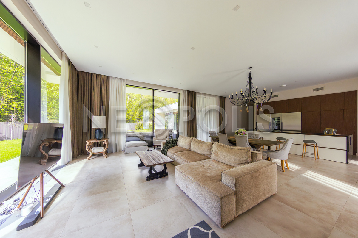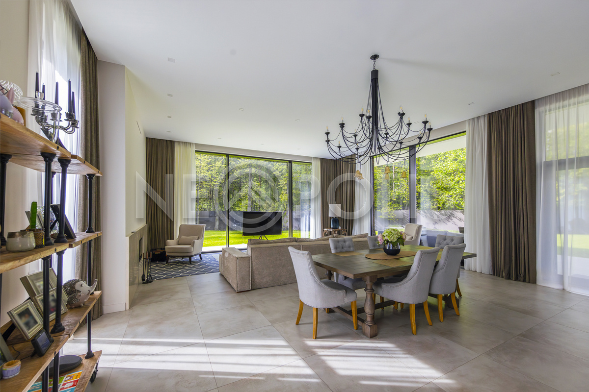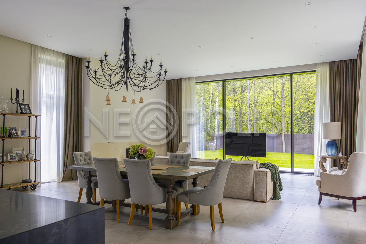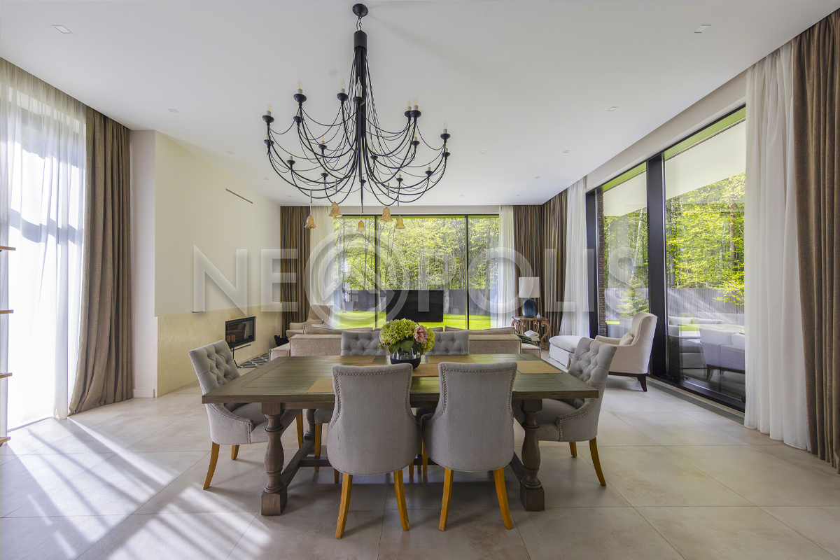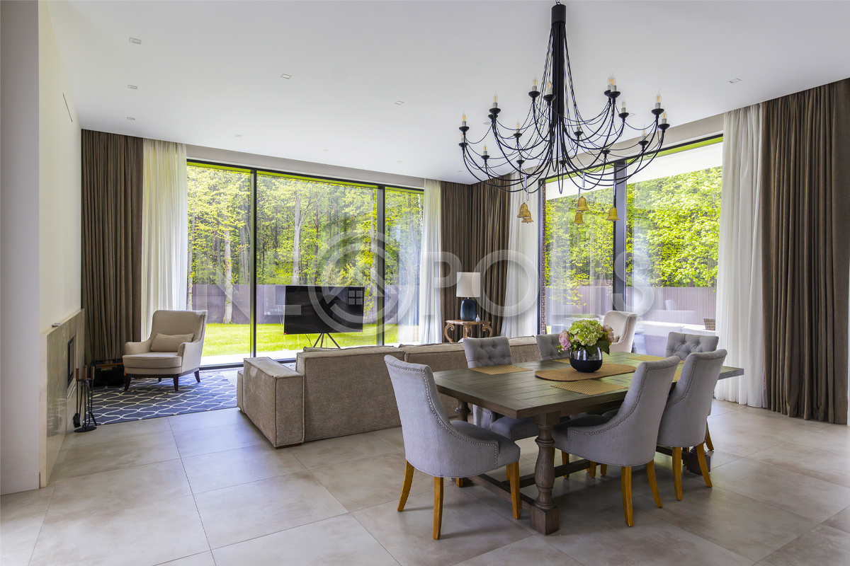 Объект расположен в комфортном для проживания поселке, на благоустроенном участке с видом на лес и ландшафтным дизайном. Полностью готов к круглогодичному проживанию. Отделка выполнена в классическом стиле из дорогих натуральных материалов.