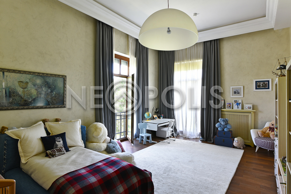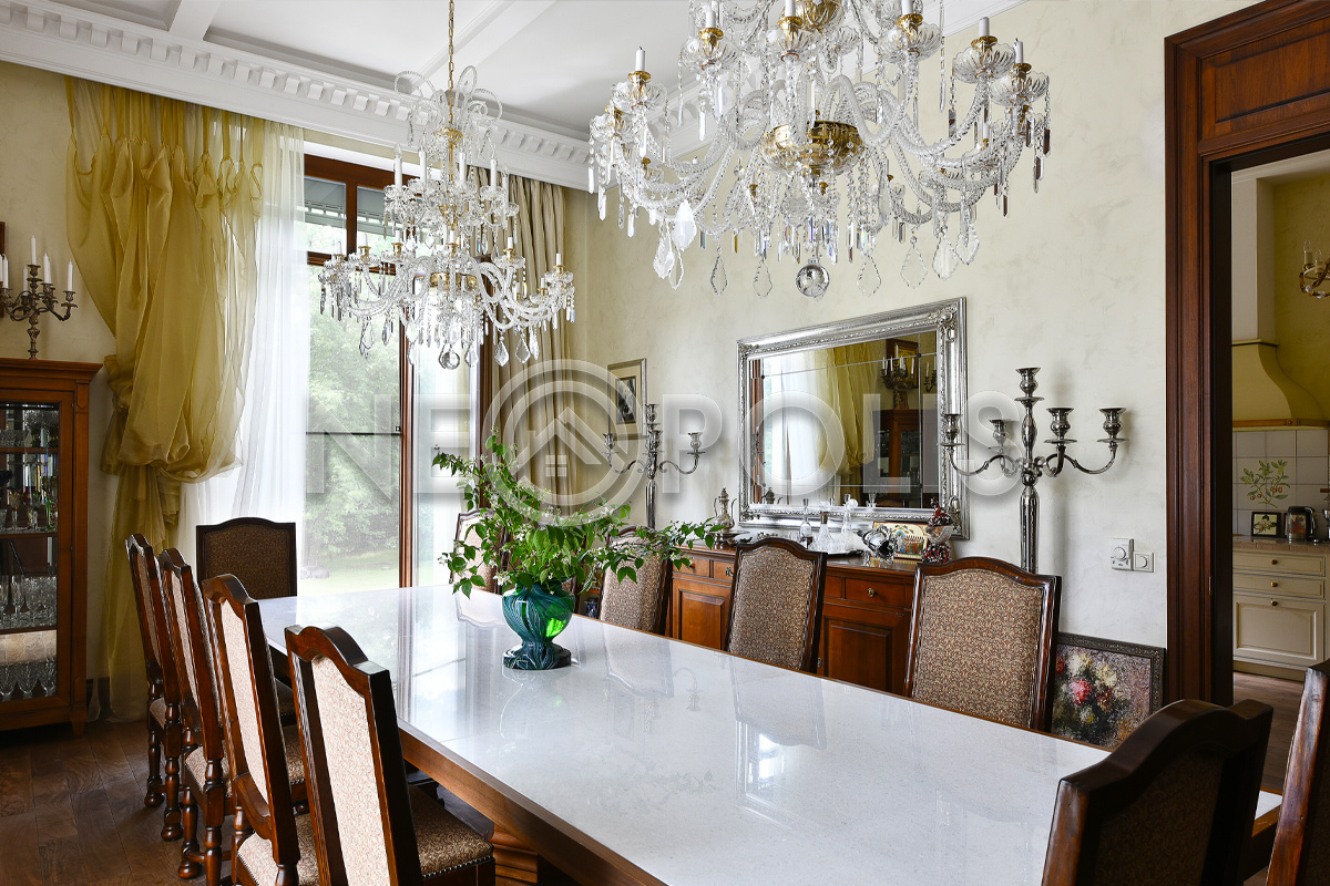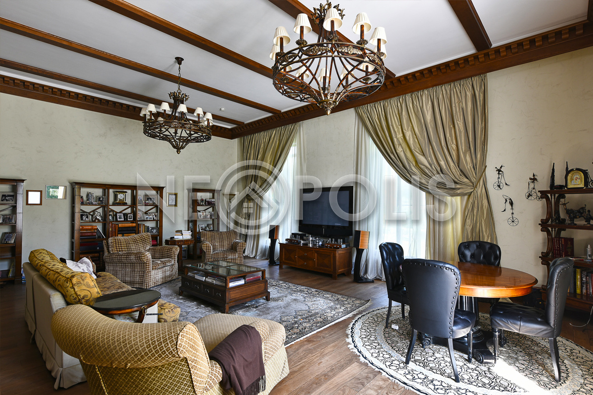 Объект расположен в комфортном для проживания поселке, на благоустроенном участке с видом на лес и ландшафтным дизайном. Полностью готов к круглогодичному проживанию. Отделка выполнена в классическом стиле из дорогих натуральных материалов.