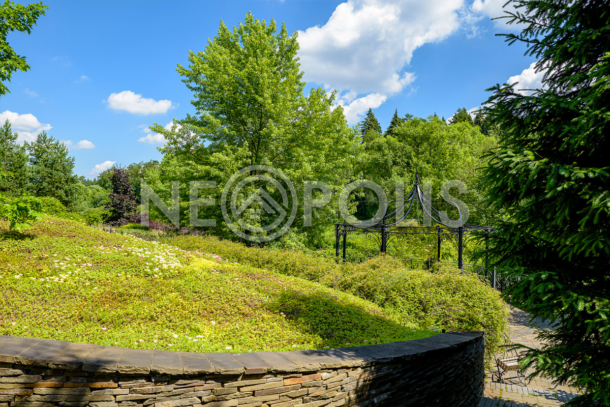 Просторный многоуровневый участок с парковым ландшафтным дизайном.