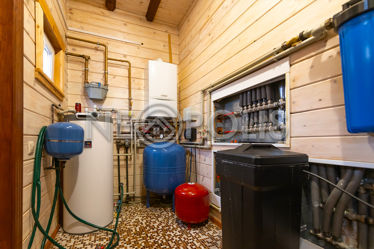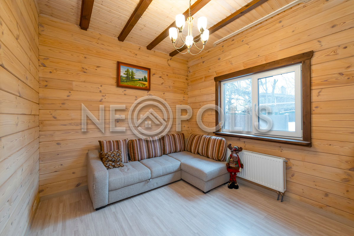 - 1 этаж:холл, кухня-столовая, гостиная с выходом на террасу 15 кв.м., спальня, сауна с душевой, санузел, котельная.