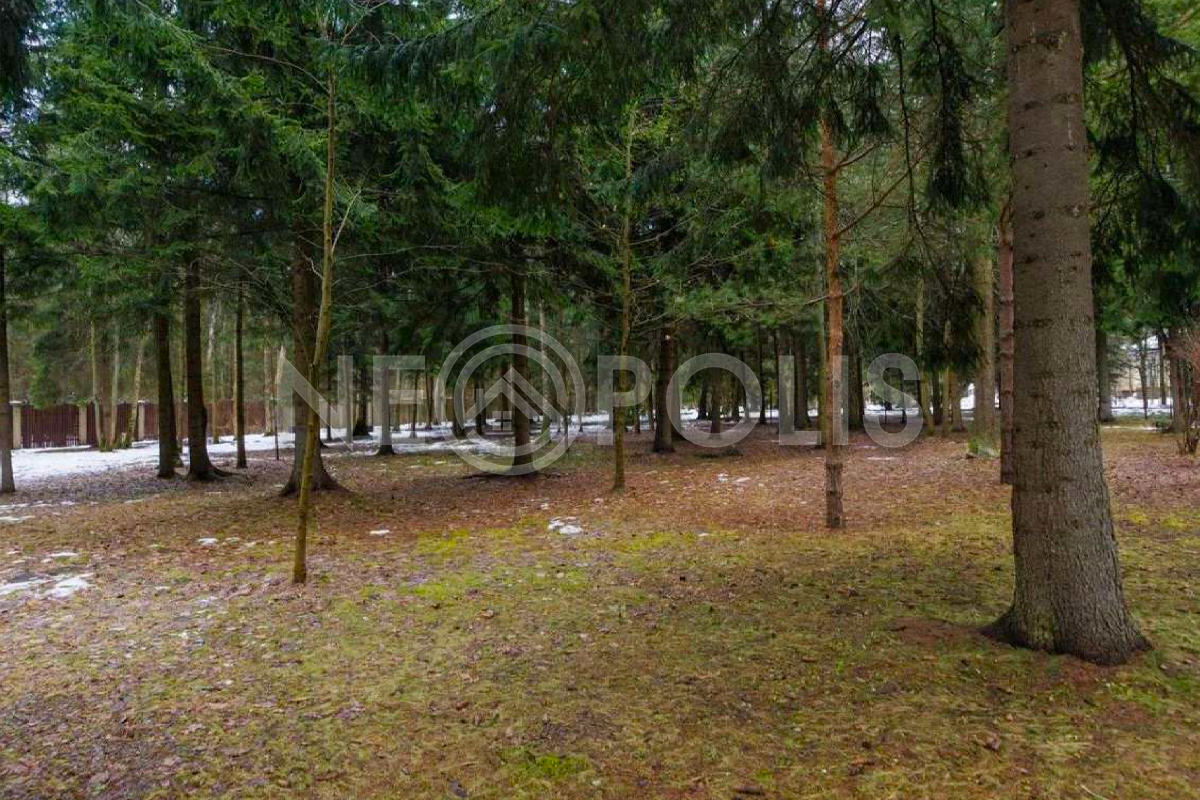 На участке растут хвойные деревья, выполнен ландшафтный дизайн со своим выходом в лес.