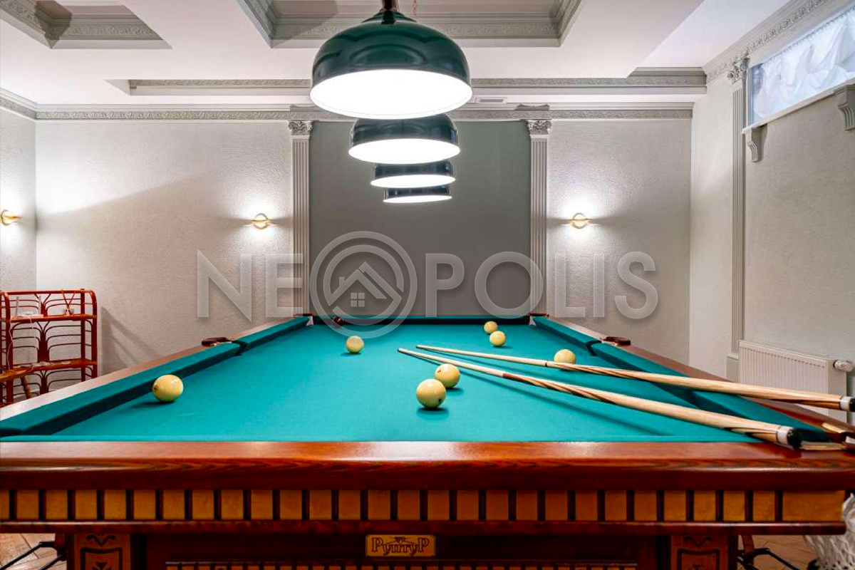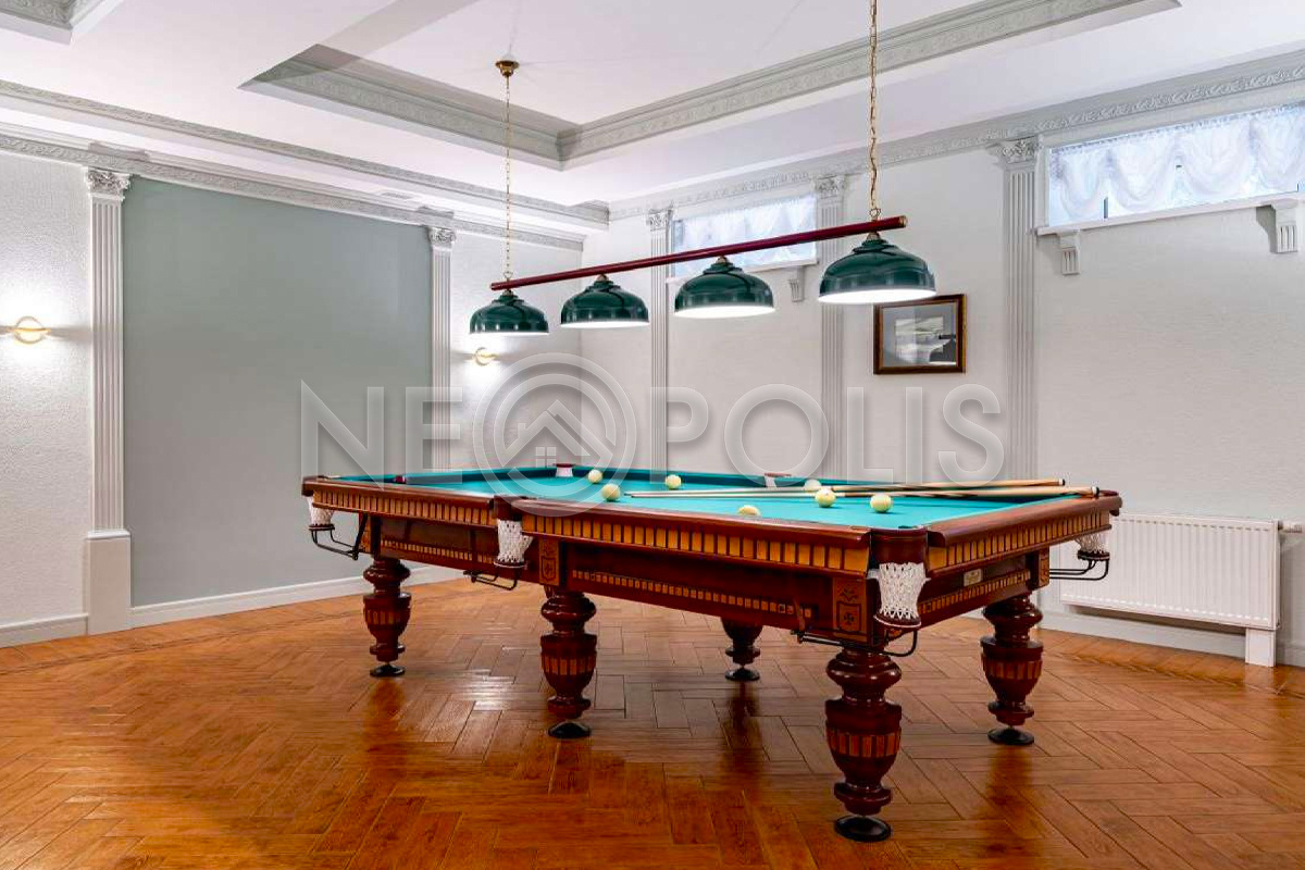 - Планировкой предусмотрено 5 спален, кабинет, бильярдная, сауна, комната отдыха.