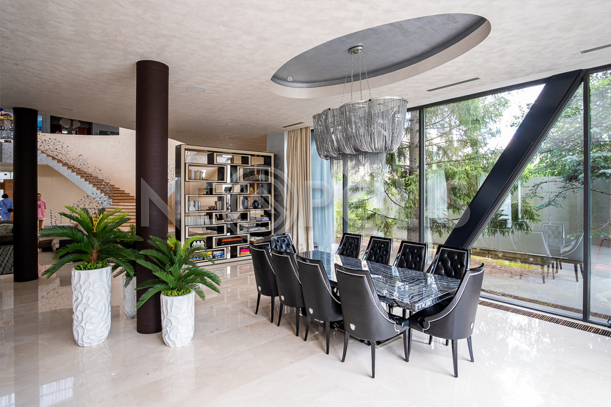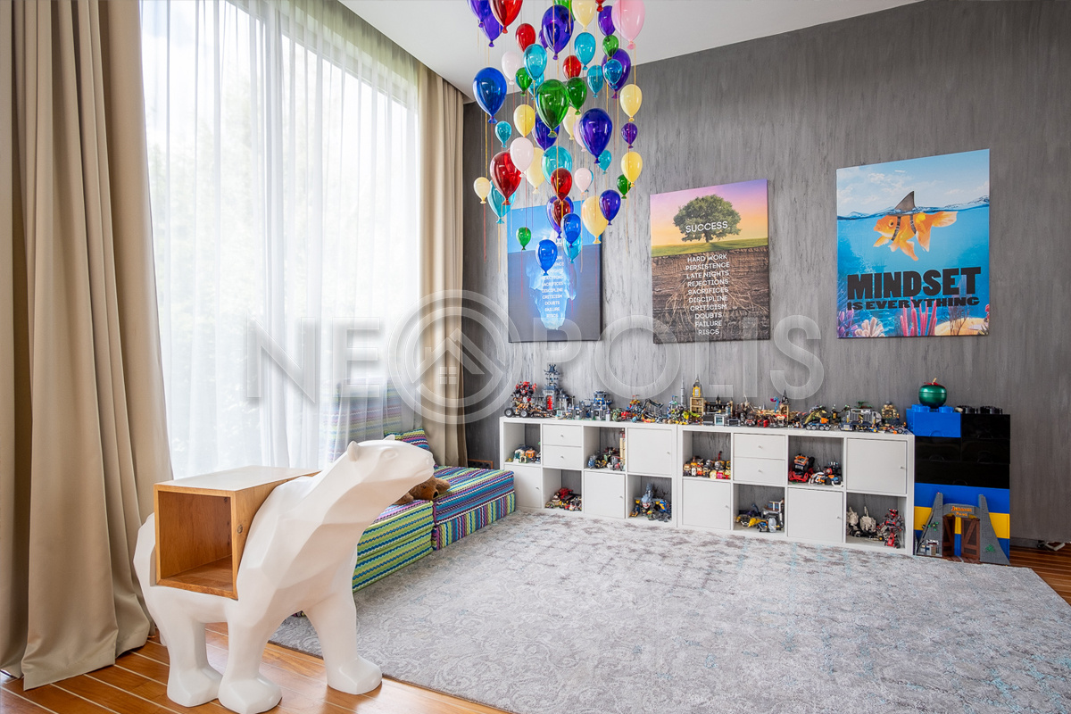 Объект расположен в комфортном для проживания поселке, на благоустроенном участке с видом на лес и ландшафтным дизайном. Полностью готов к круглогодичному проживанию. Отделка выполнена в классическом стиле из дорогих натуральных материалов.