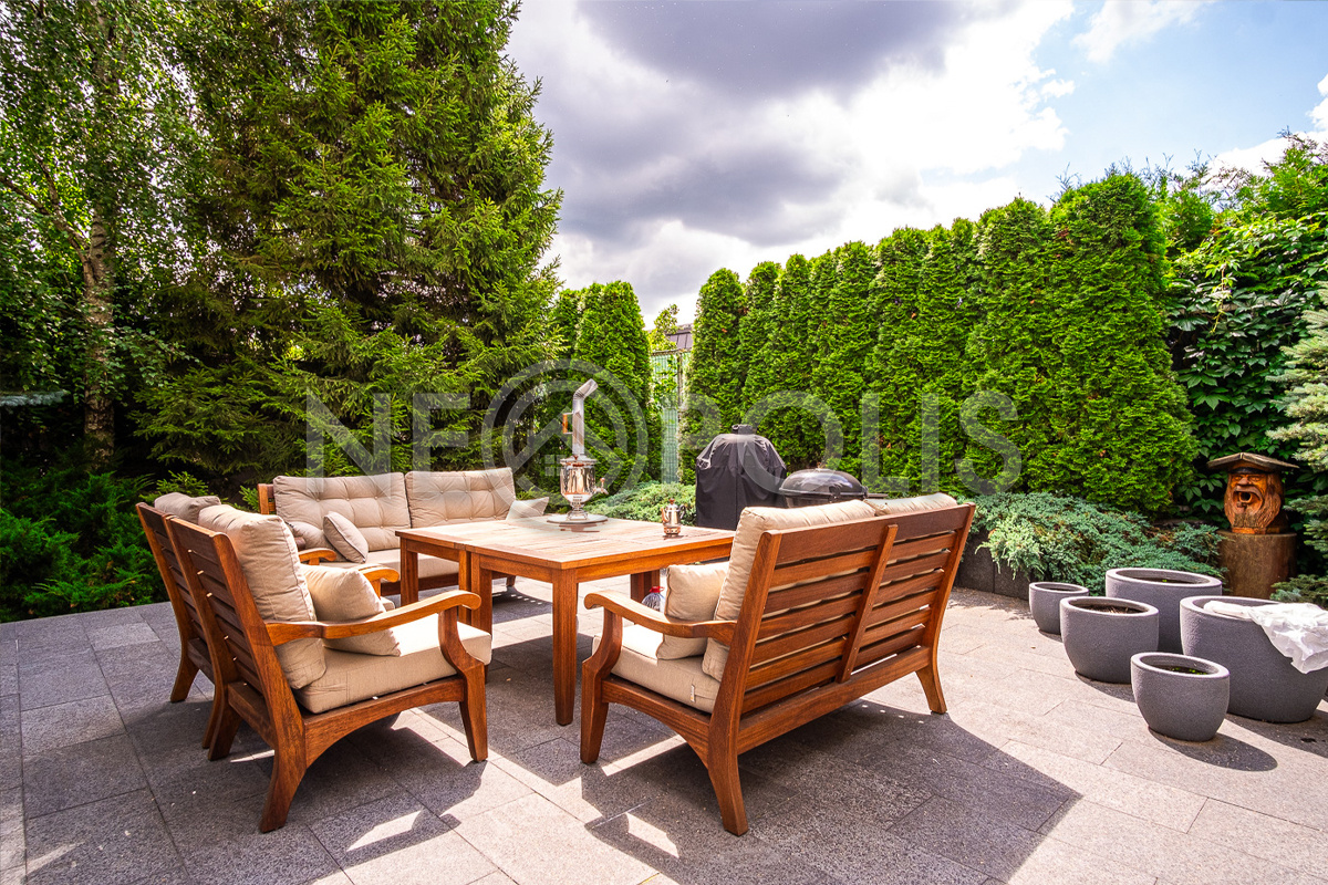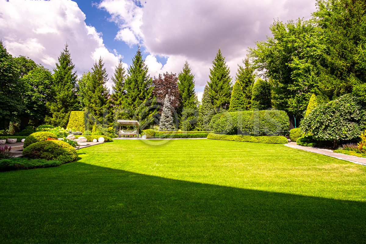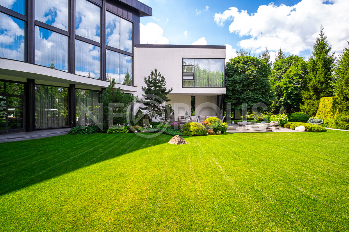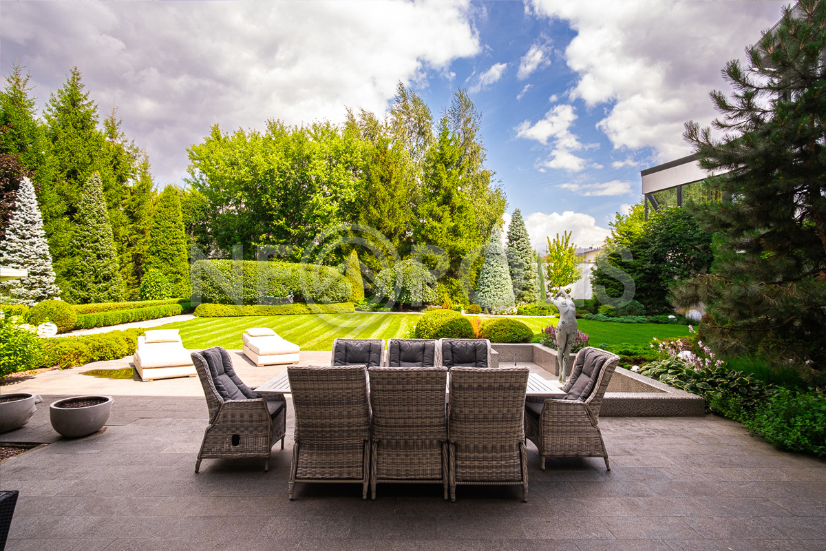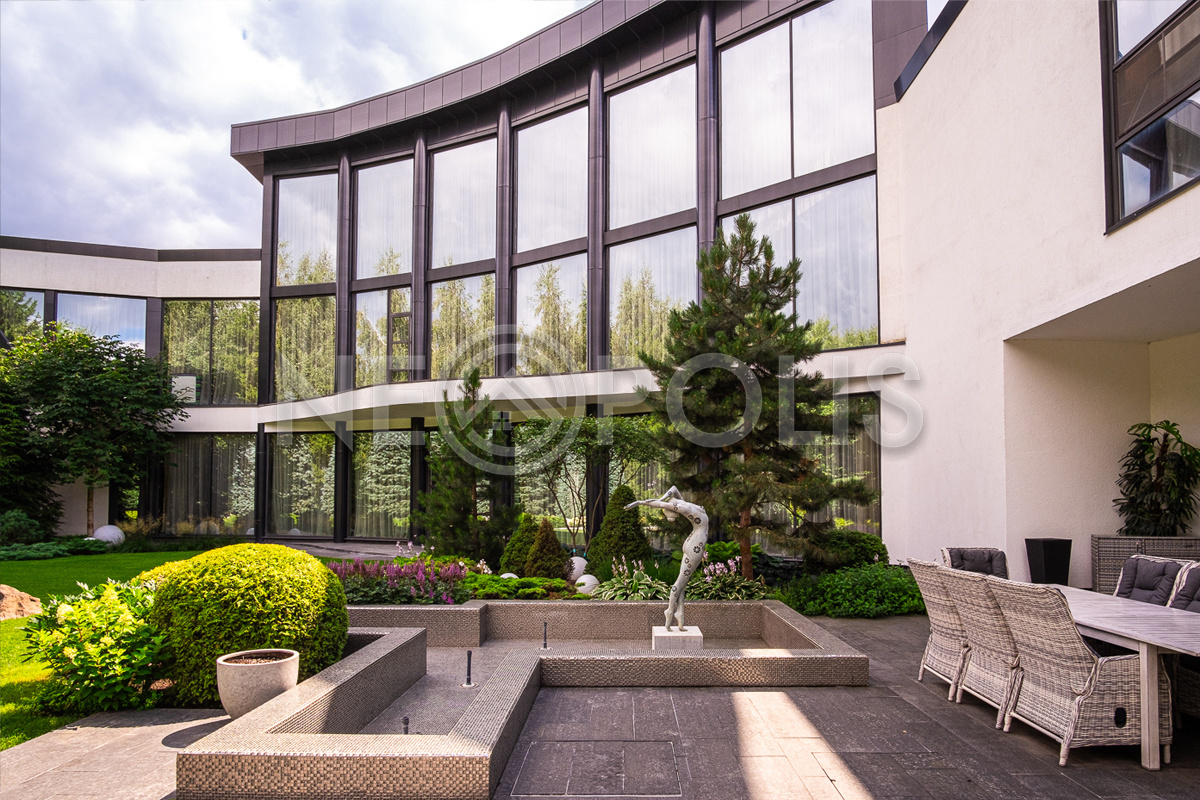 Профессиональный ландшафтный дизайн, большой зелёный многолетний сад с крупномерами и фонтанами, тихая приватная территория