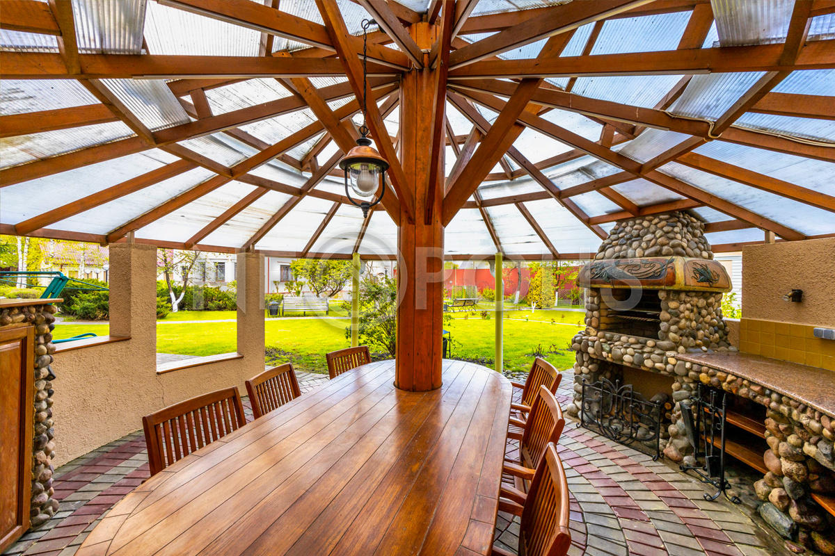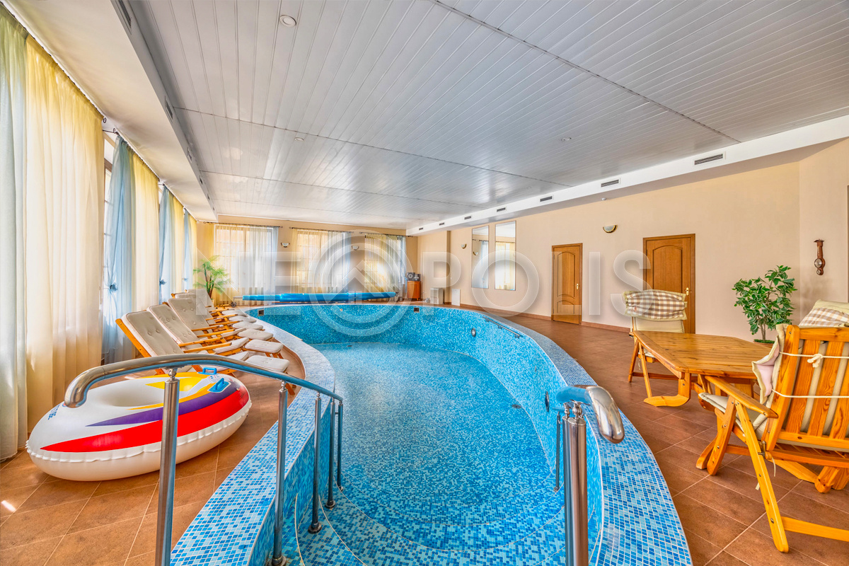 Дополнительно на участке располагается большая SPA зона с бассейном, сауной и комнатой отдыха, беседка для барбекю с подведёнными коммуникациями, дом для персонала с мастерской и хозблок.