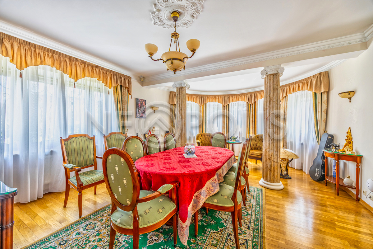 Объект расположен в комфортном для проживания поселке, на благоустроенном участке с видом на лес и ландшафтным дизайном. Полностью готов к круглогодичному проживанию. Отделка выполнена в классическом стиле из дорогих натуральных материалов.
