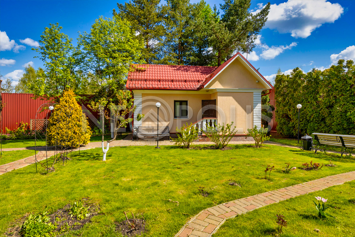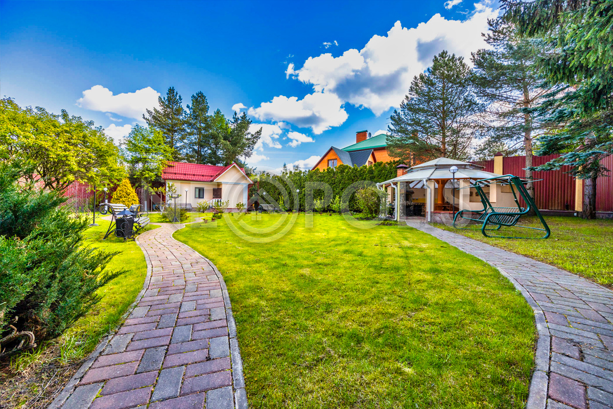 На просторном живописном участке выполнен ландшафтный дизайн, высажены крупномерные и плодовые деревья и кустарники.