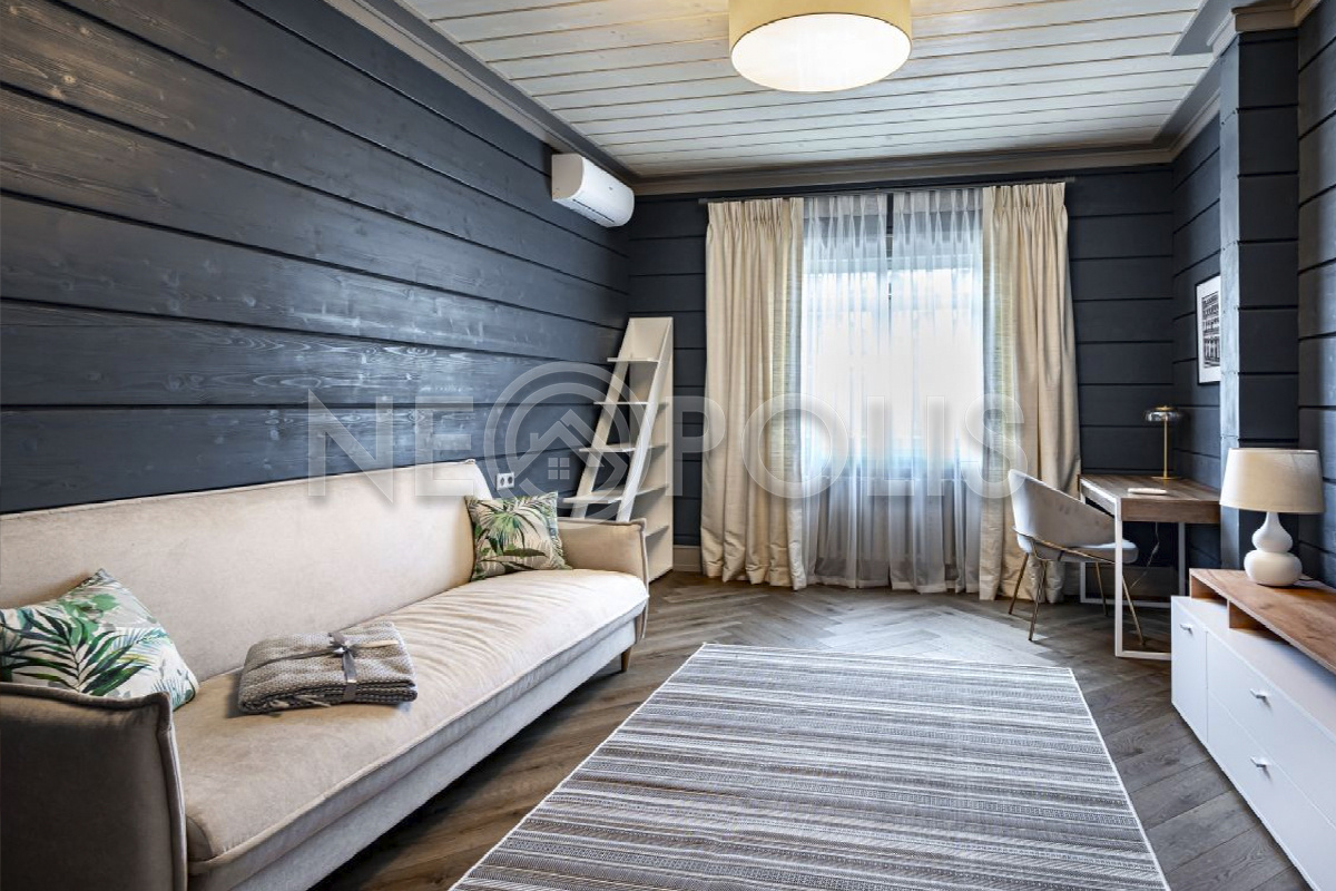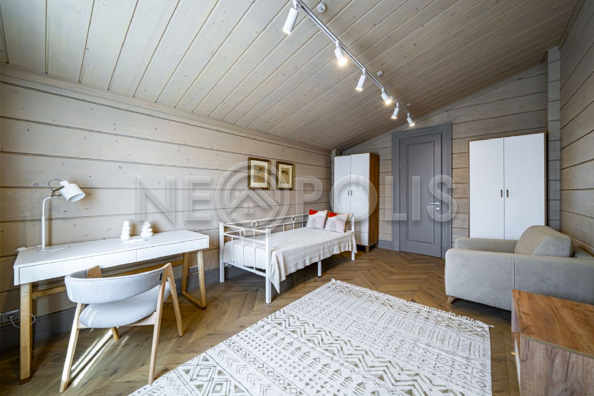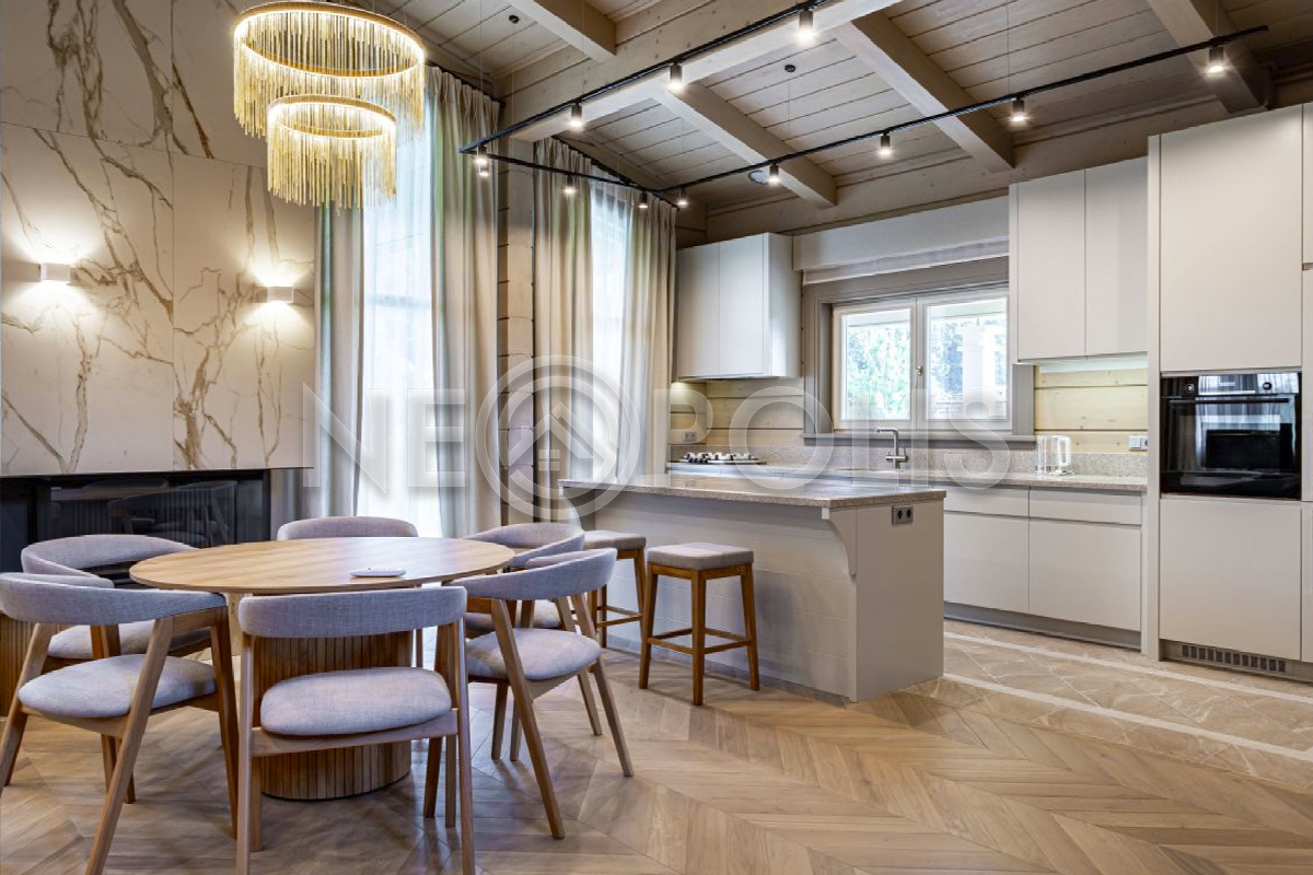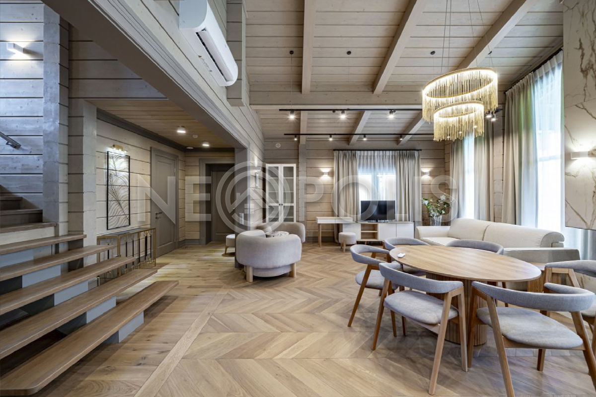Объект расположен в комфортном для проживания поселке, на благоустроенном участке с видом на лес и ландшафтным дизайном. Полностью готов к круглогодичному проживанию. Отделка выполнена в классическом стиле из дорогих натуральных материалов.