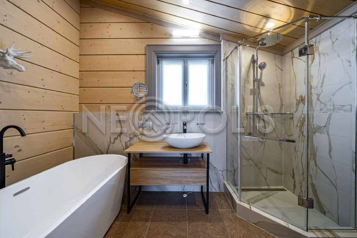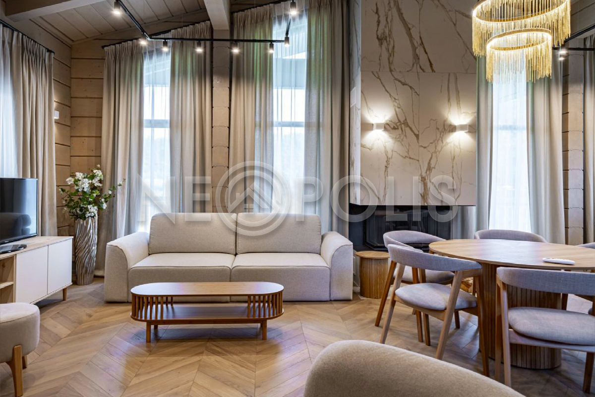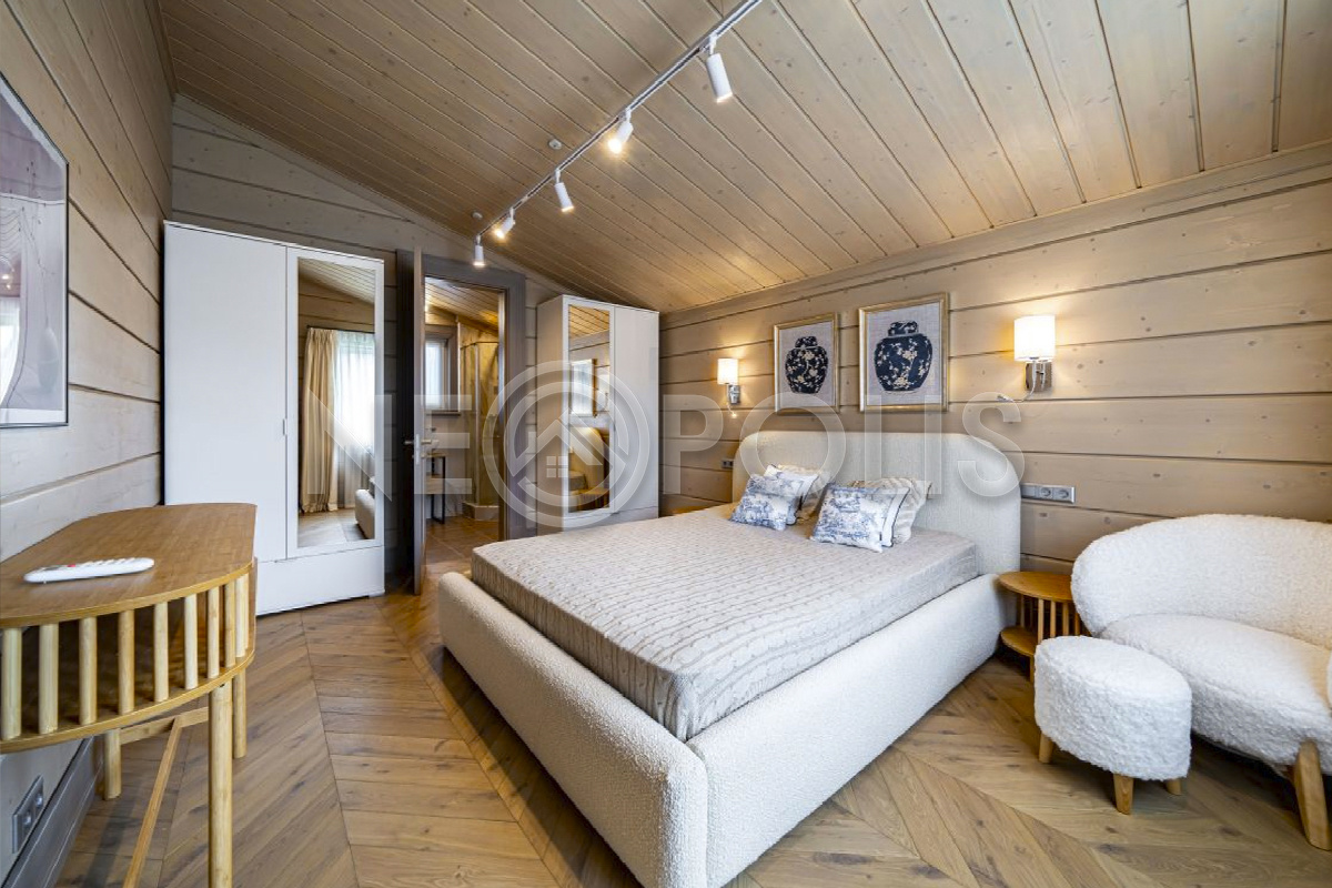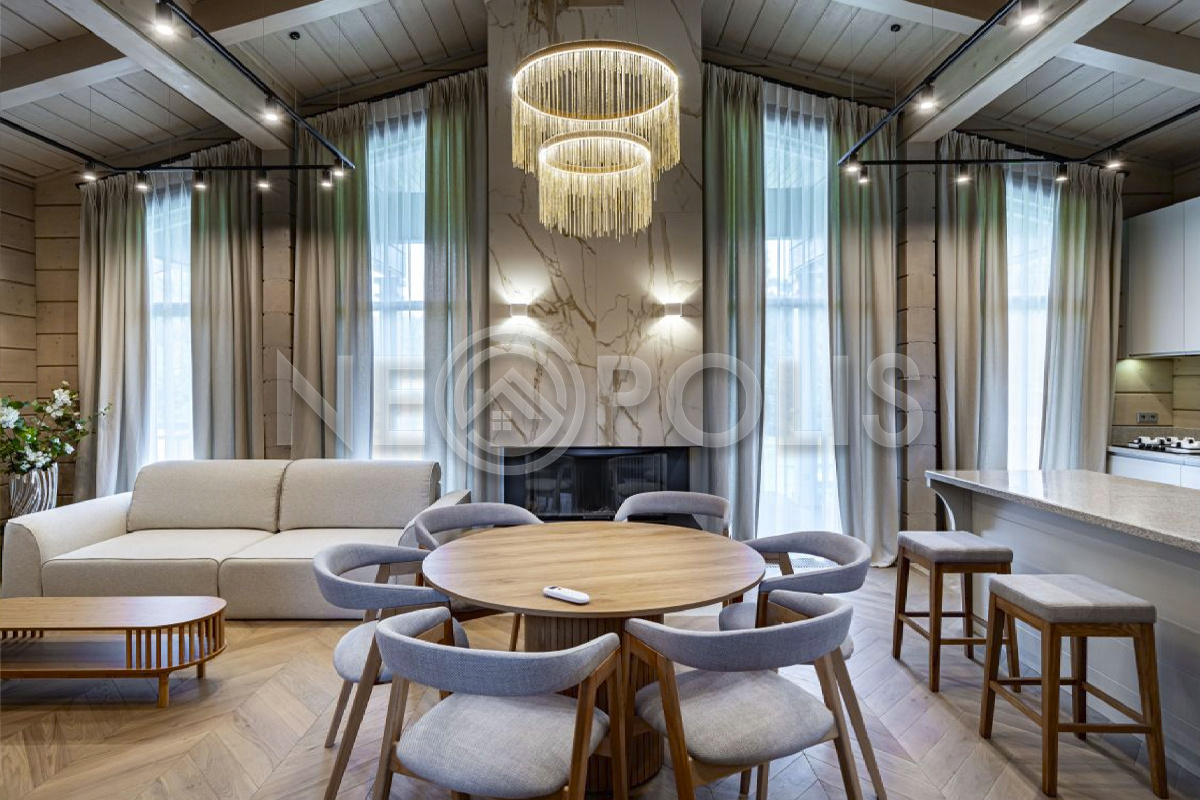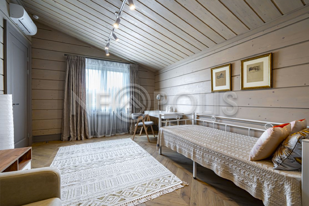 Объект расположен в комфортном для проживания поселке, на благоустроенном участке с видом на лес и ландшафтным дизайном. Полностью готов к круглогодичному проживанию. Отделка выполнена в классическом стиле из дорогих натуральных материалов.