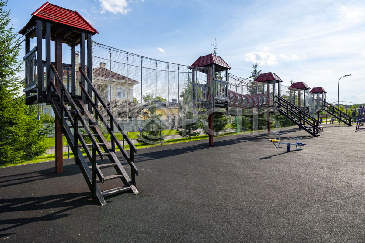 Территория поселка огорожена и находится под круглосуточной охраной (видеонаблюдение и патрулирование), въезд через контроль-пропускной пункт; внутри поселка асфальтированные дороги, уличное освещение, частная школа "Созвездие знаний" (с 1 по 6 классы), искусственный водоем с прогулочными зонами , детская и спортивная площадки, футбольное и баскетбольное поле, собственная управляющая компания, гостевая парковка.