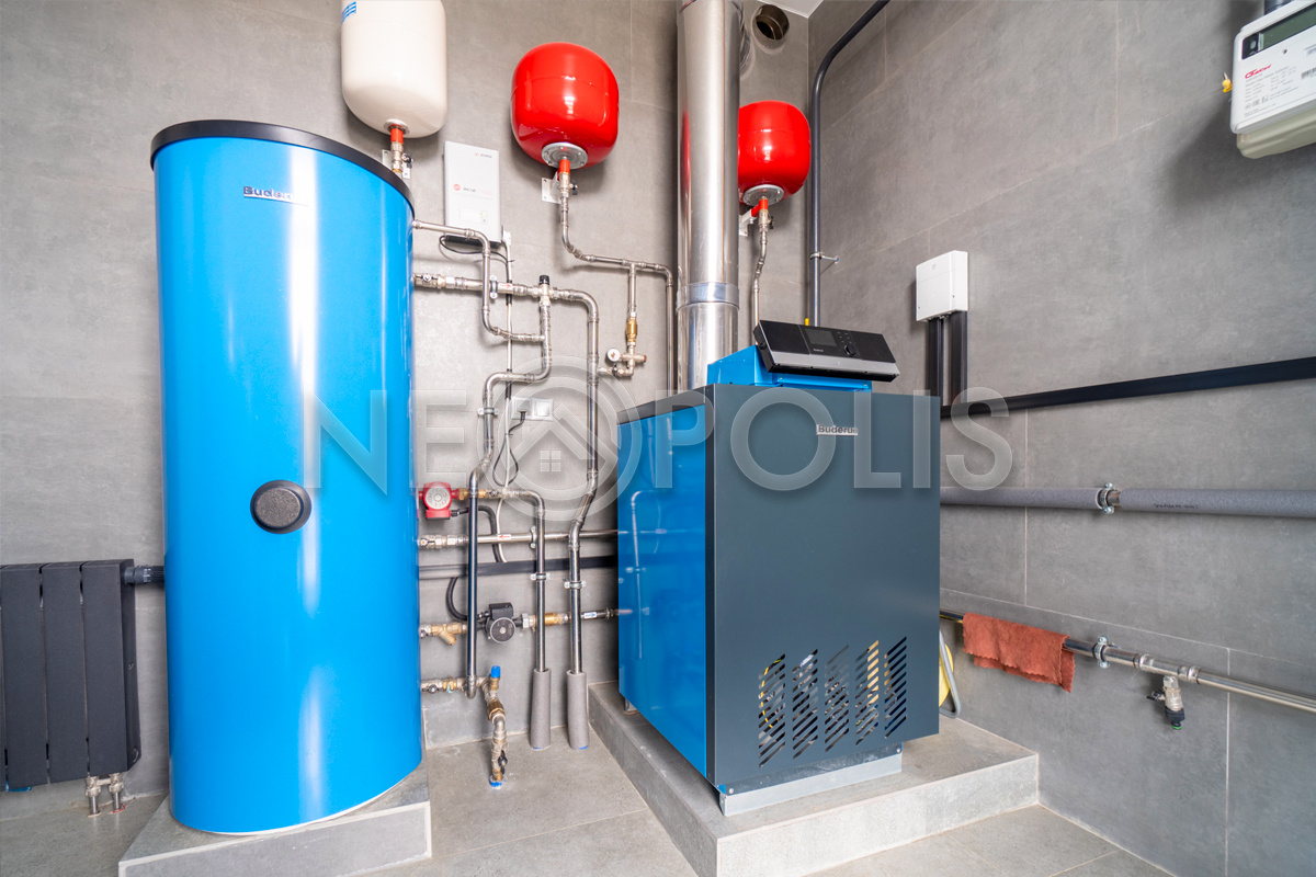 магистральный, установлен немецкий газовый котел Buderus Logano G234-44 WS (43 кВт на 400 кв.м)