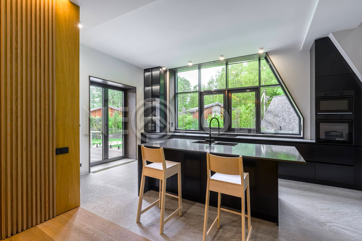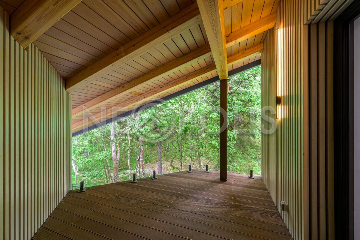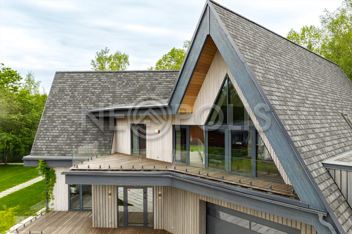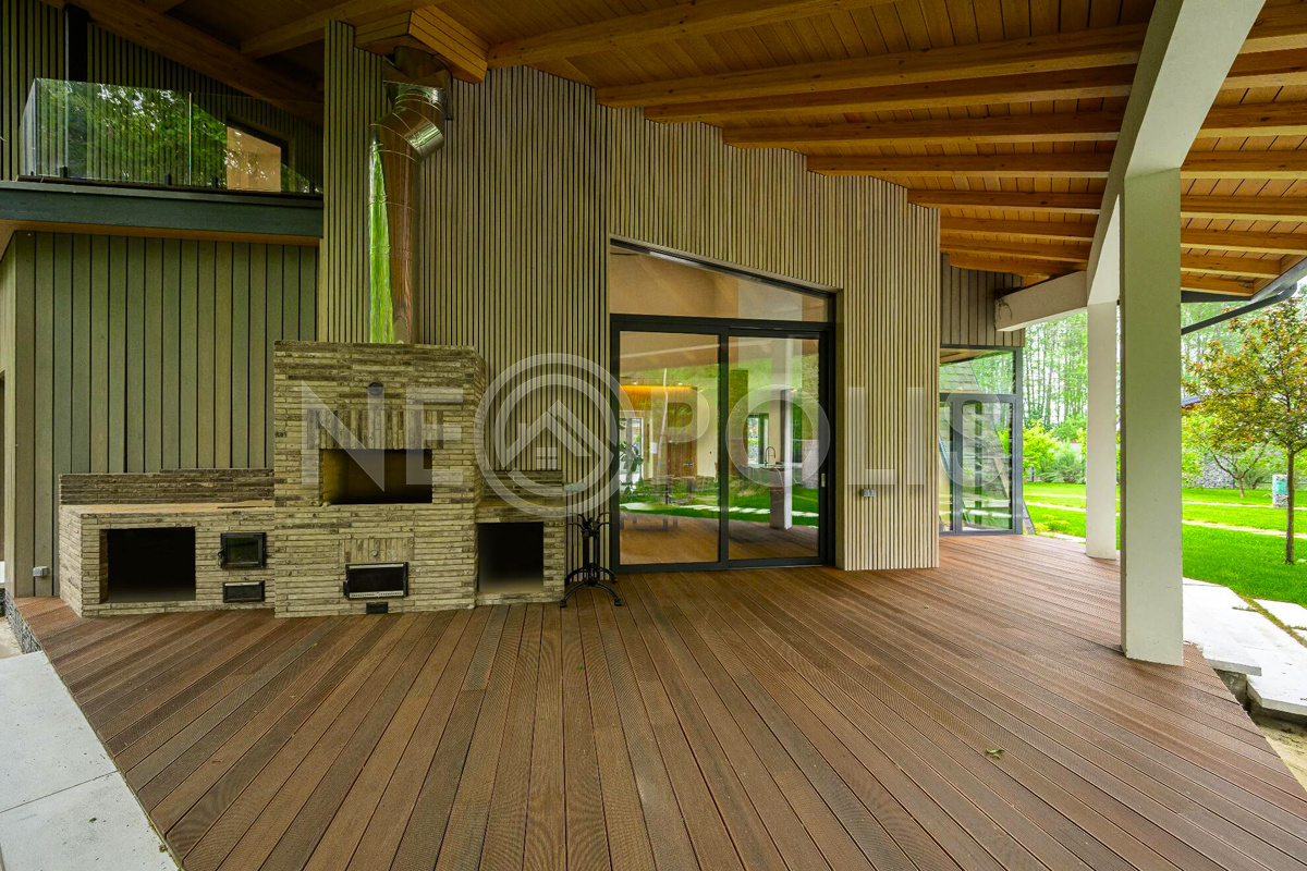 - Материал стен бетонные блоки, вентилируемый фасад, отделка из термолиственницы (планкен), сохраняет комфортную температуру круглый год