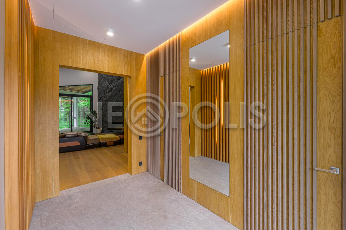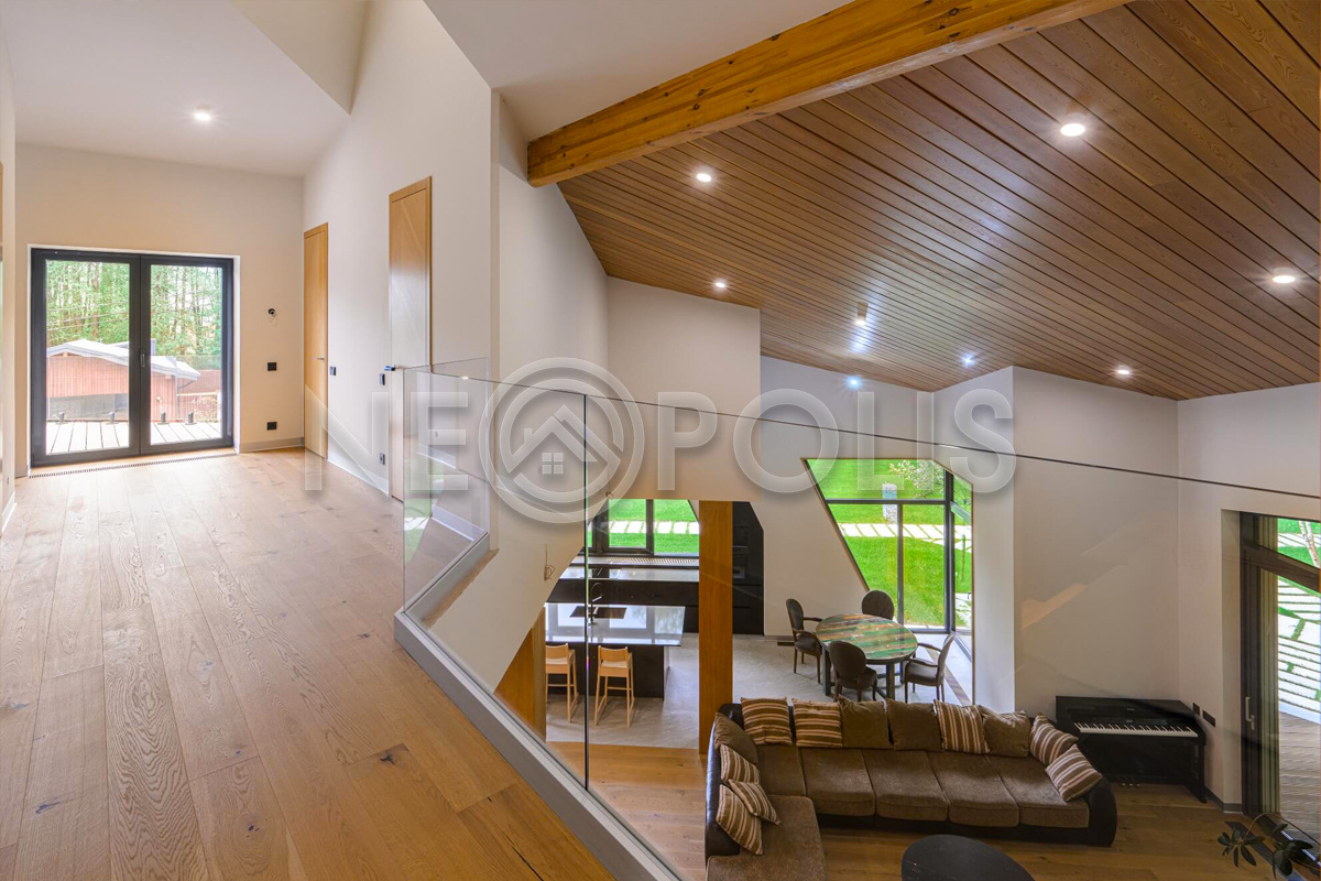 Объект расположен в комфортном для проживания поселке, на благоустроенном участке с видом на лес и ландшафтным дизайном. Полностью готов к круглогодичному проживанию. Отделка выполнена в классическом стиле из дорогих натуральных материалов.